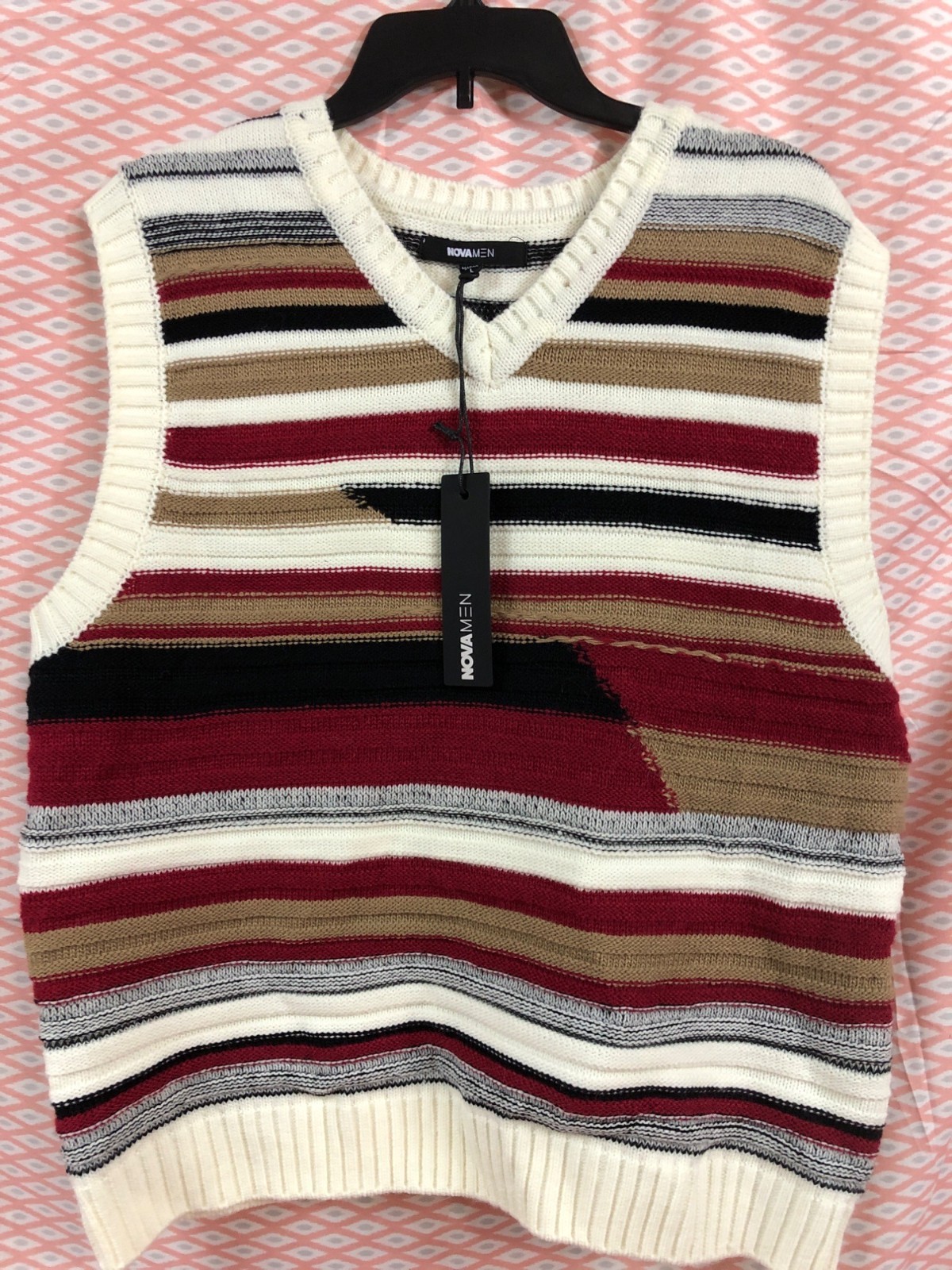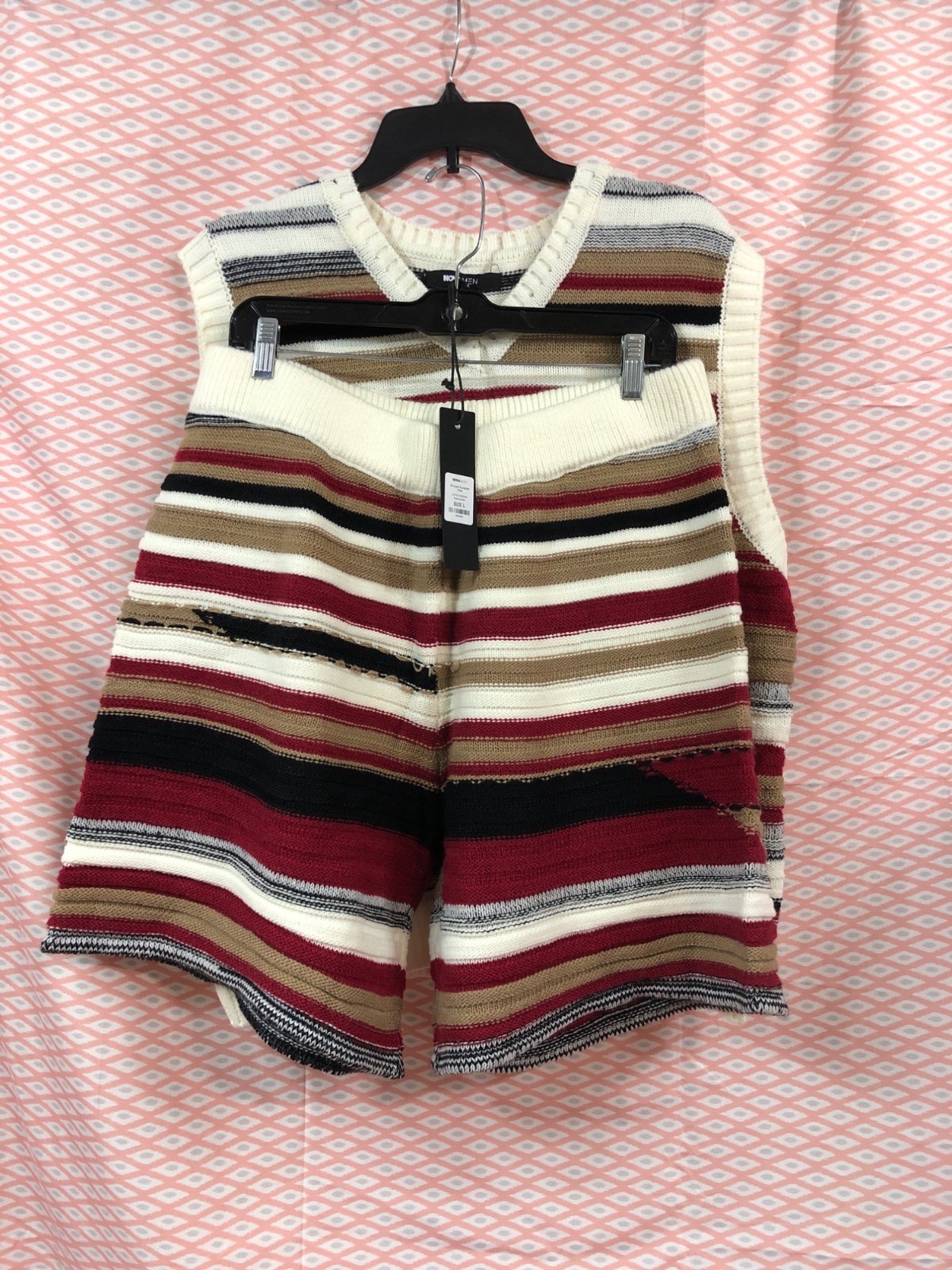 FASHION NOVA Mens Striped Sweater Vest & Shorts - Red/combo Size L NWT