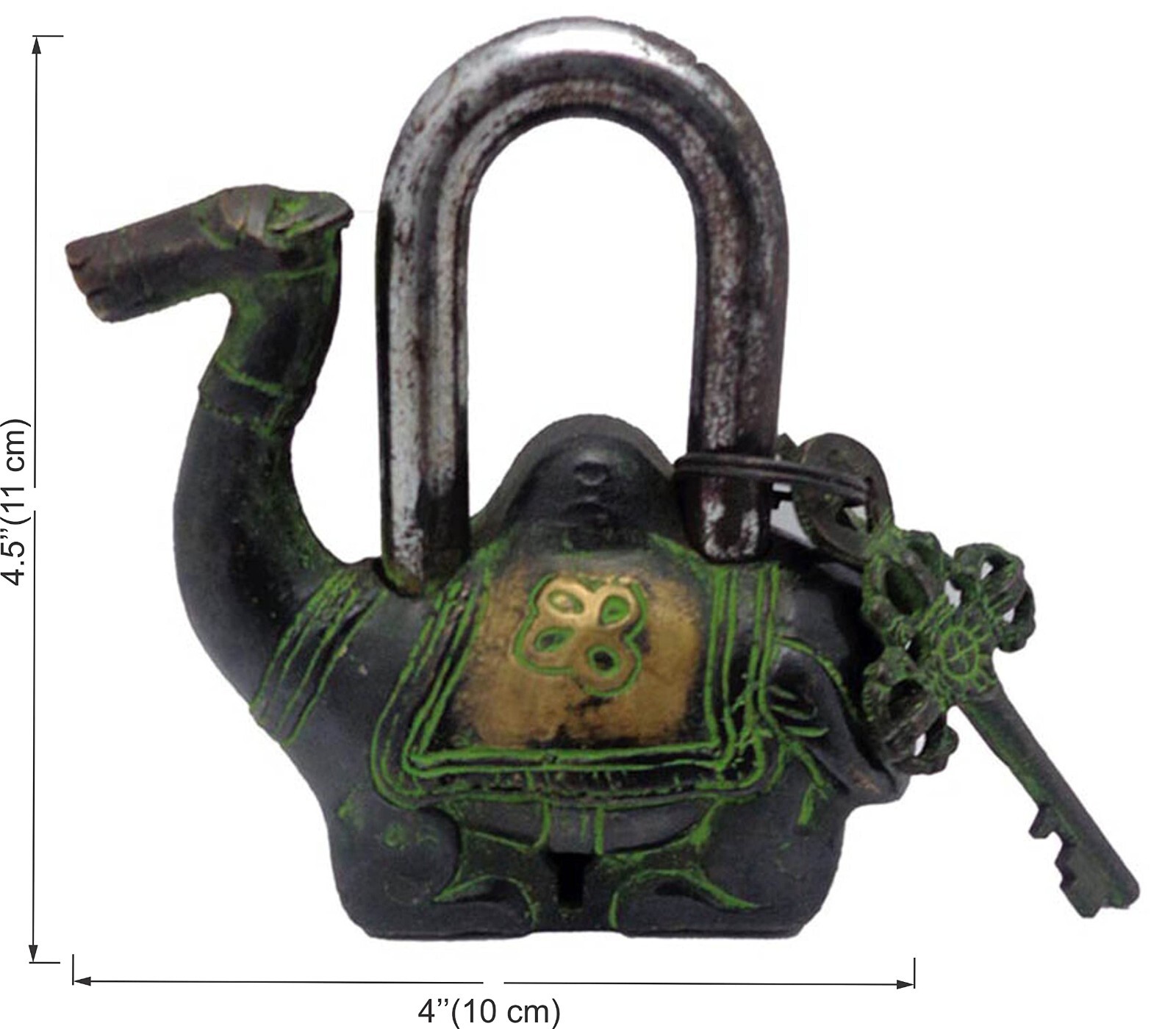 Fatto a Mano Antico Stile Camel a Forma Di Casa Serratura Decorato E Chiave