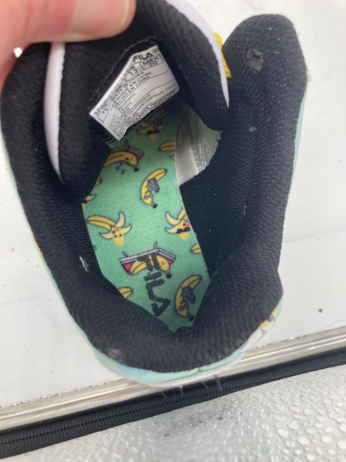 Fila Youth Banana Print High-Top Sneakers Yellow Laces Size 1