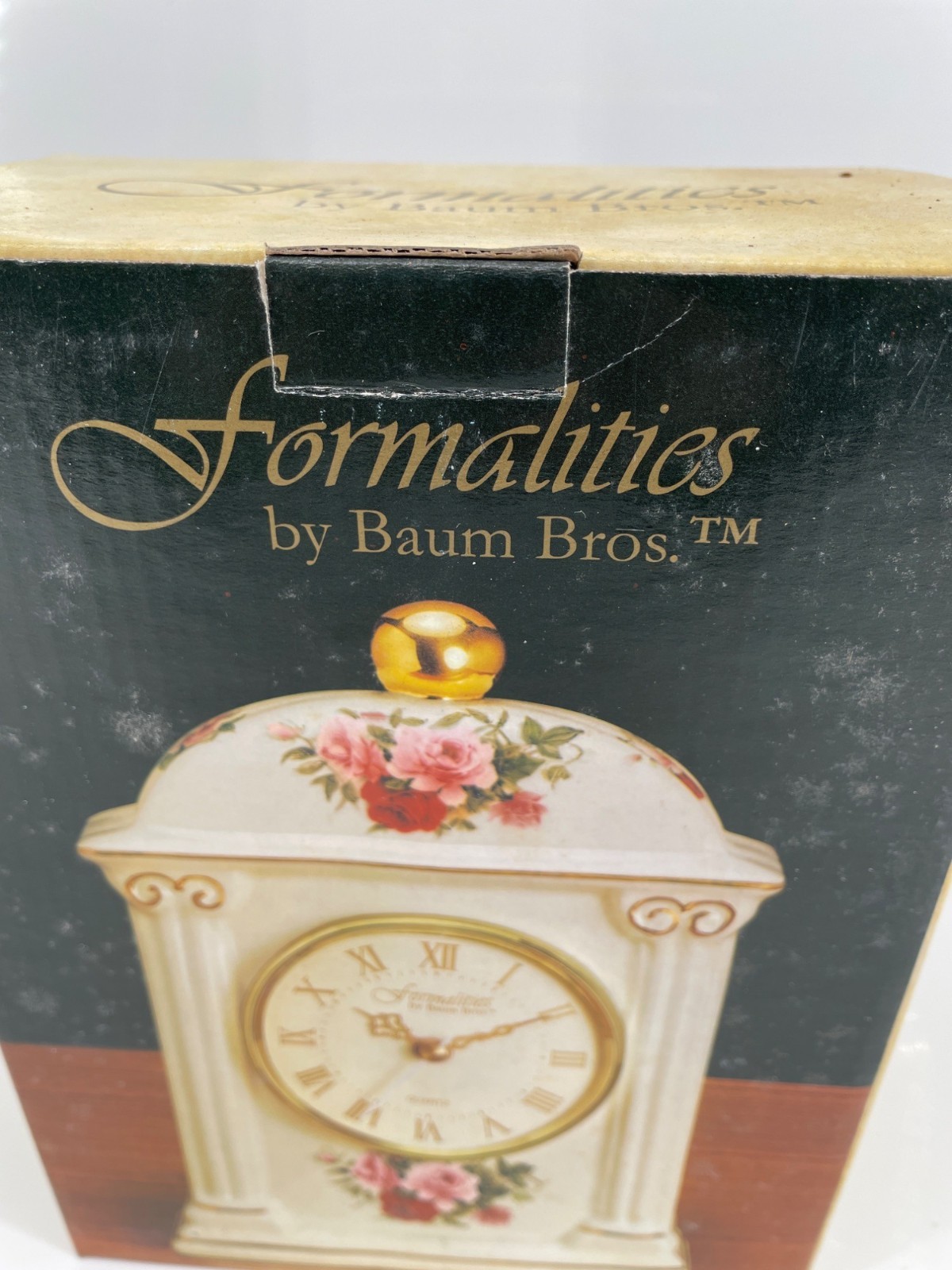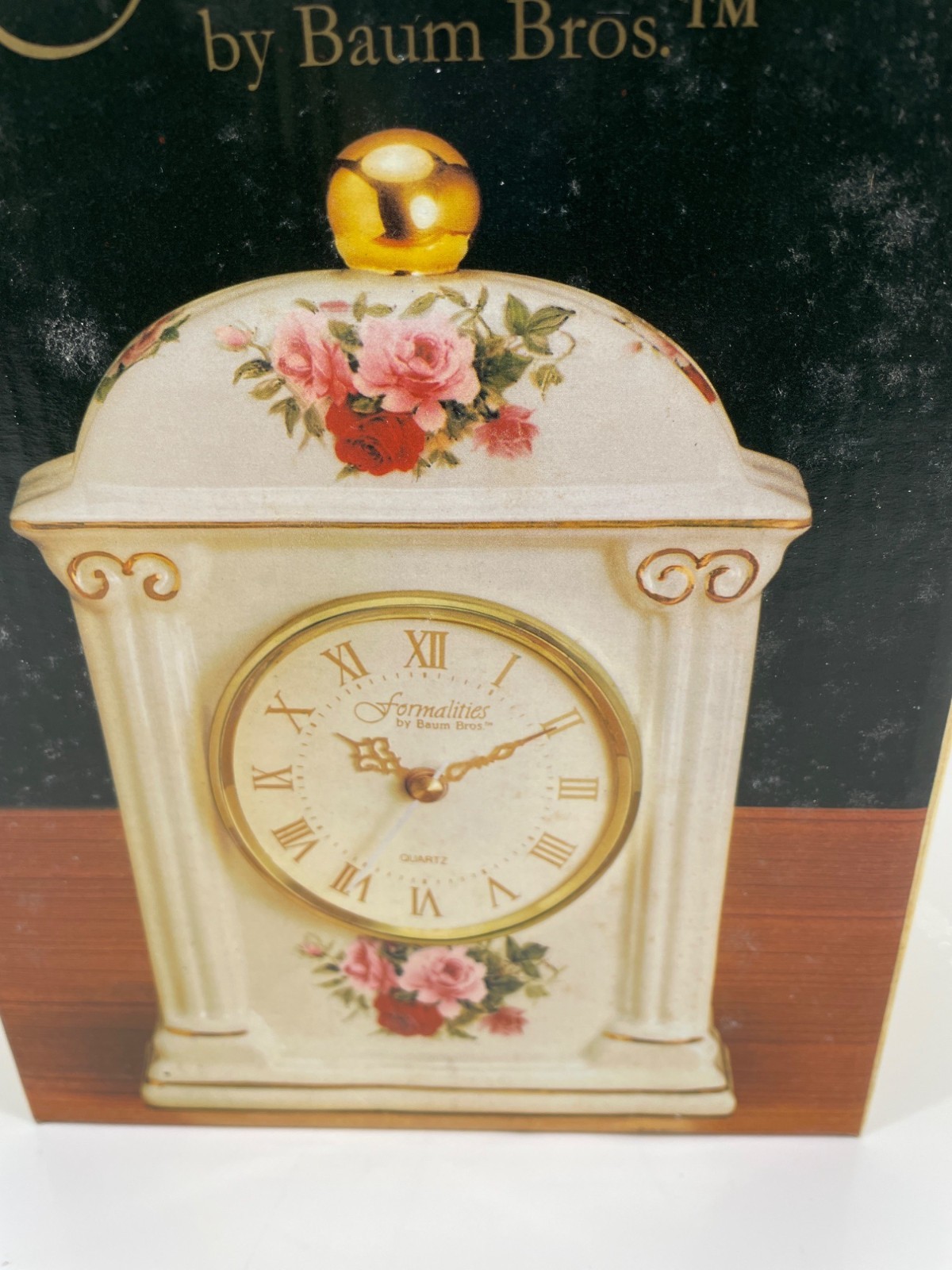 Formalities by Baum Bros. Ivory/Gold Victorian Rose Carriage Quartz Clock NIB