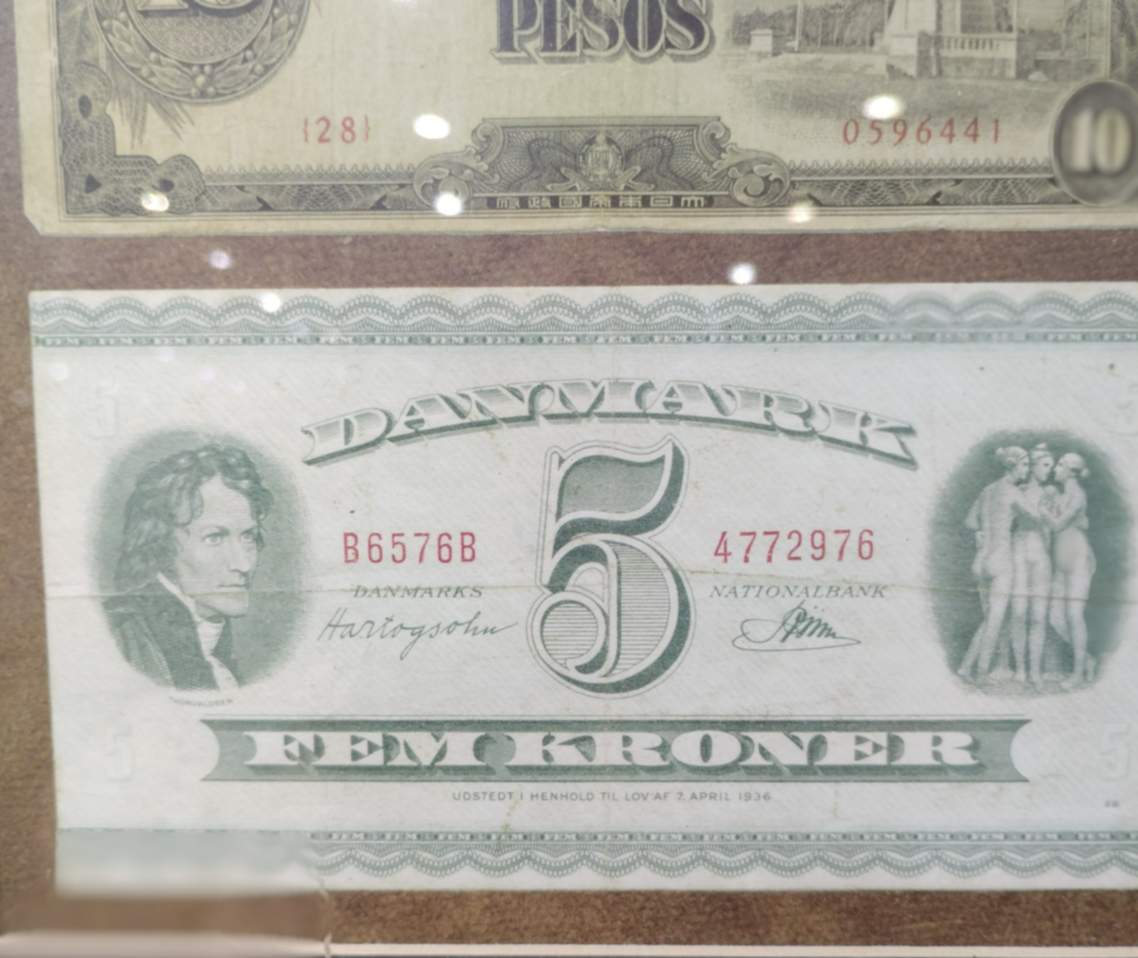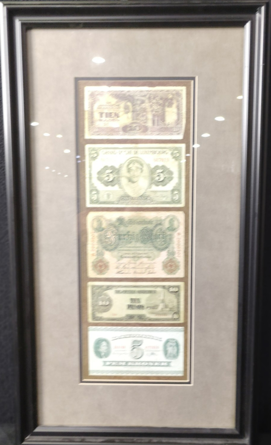 Framed 5 Vintage Different Countries Currency 27"H x 15"L (Houston Pick Up Only)