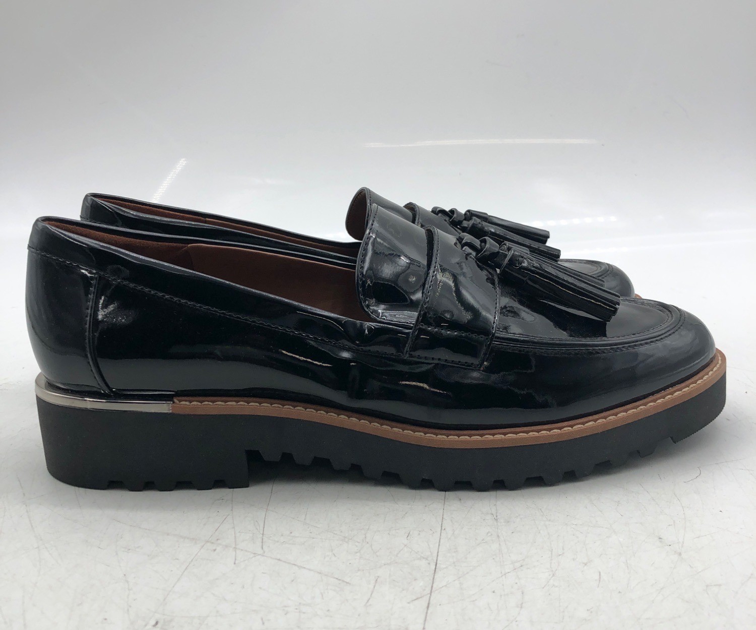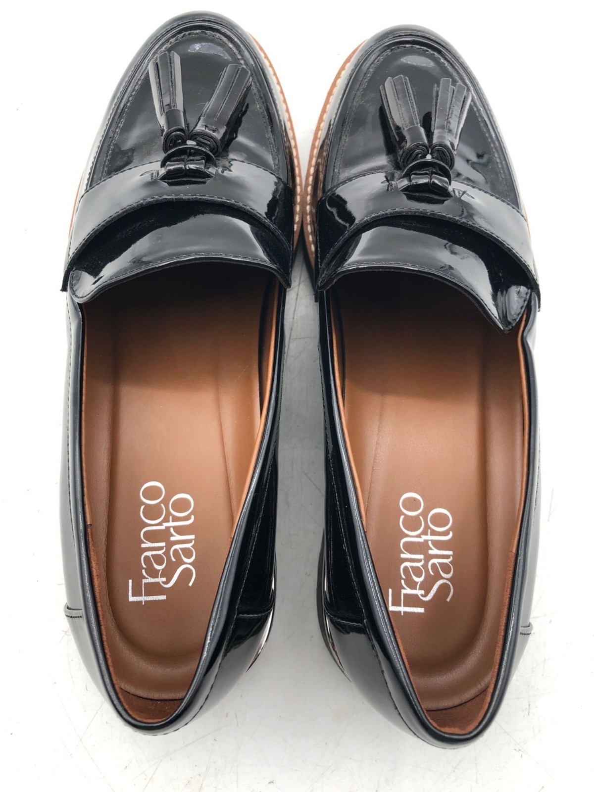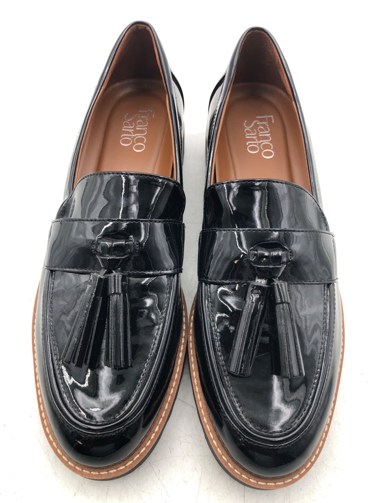 Franco Sarto Womens Carolynn Tassel Loafers Black Patent Leather- Size 9M