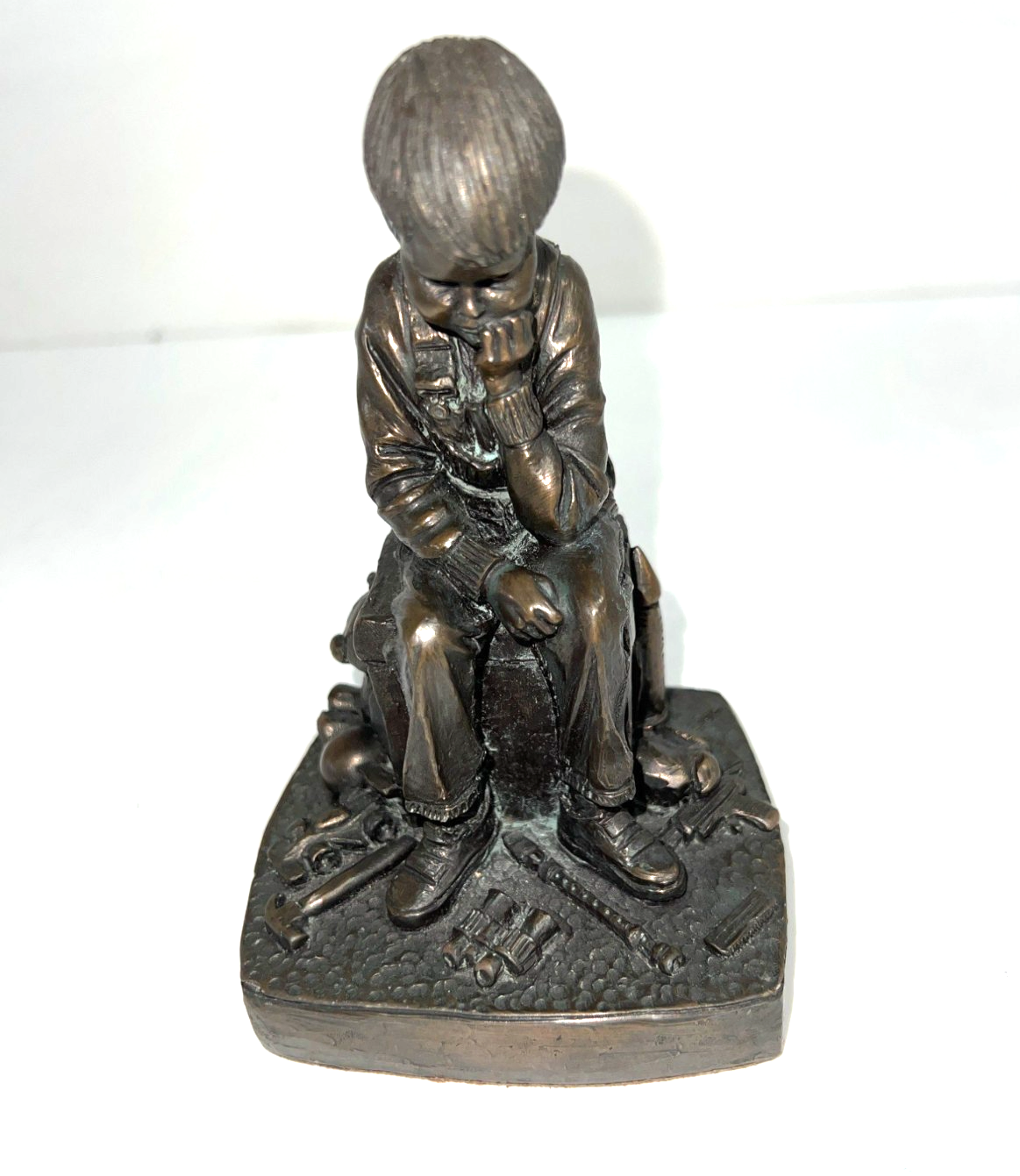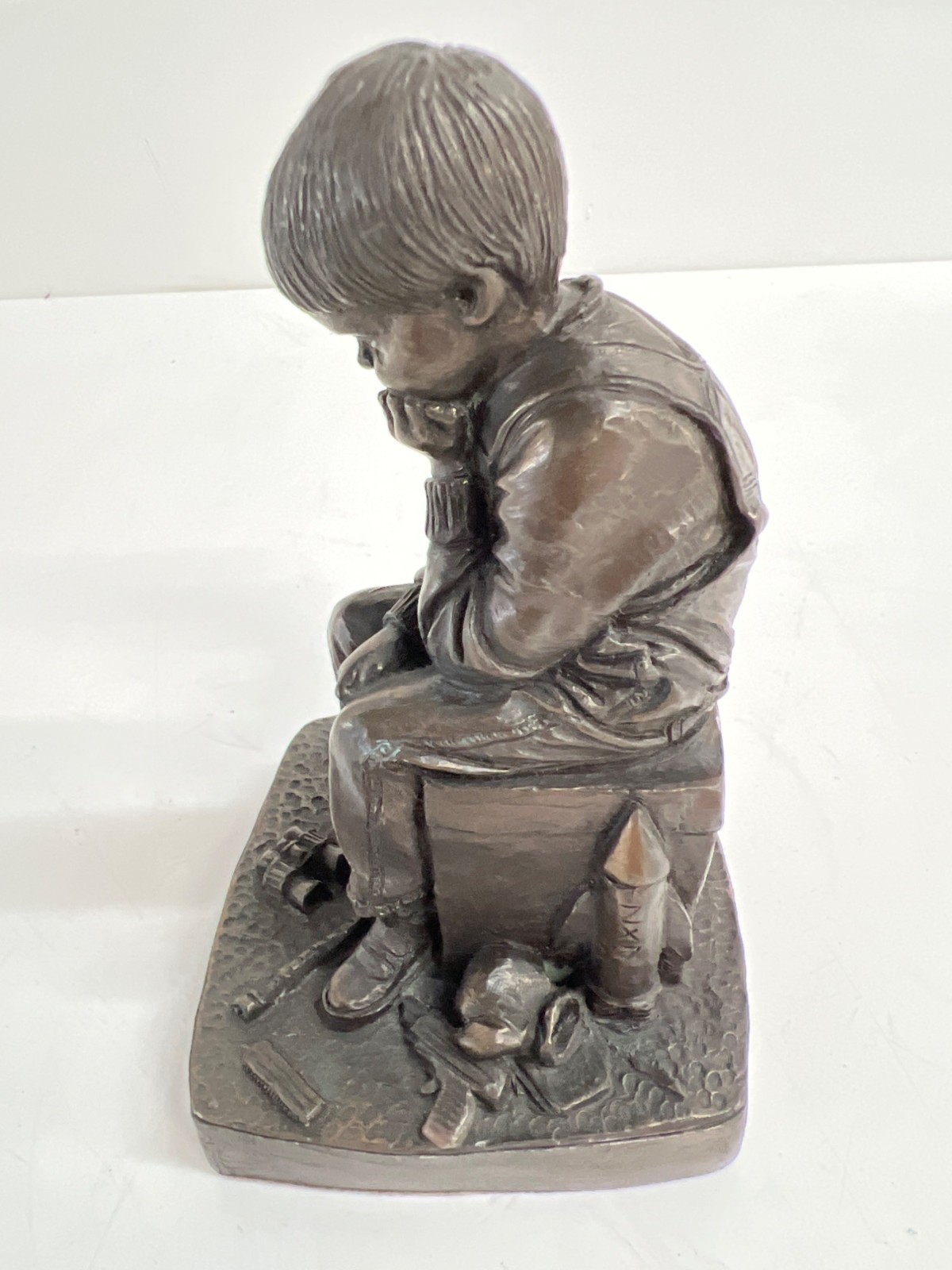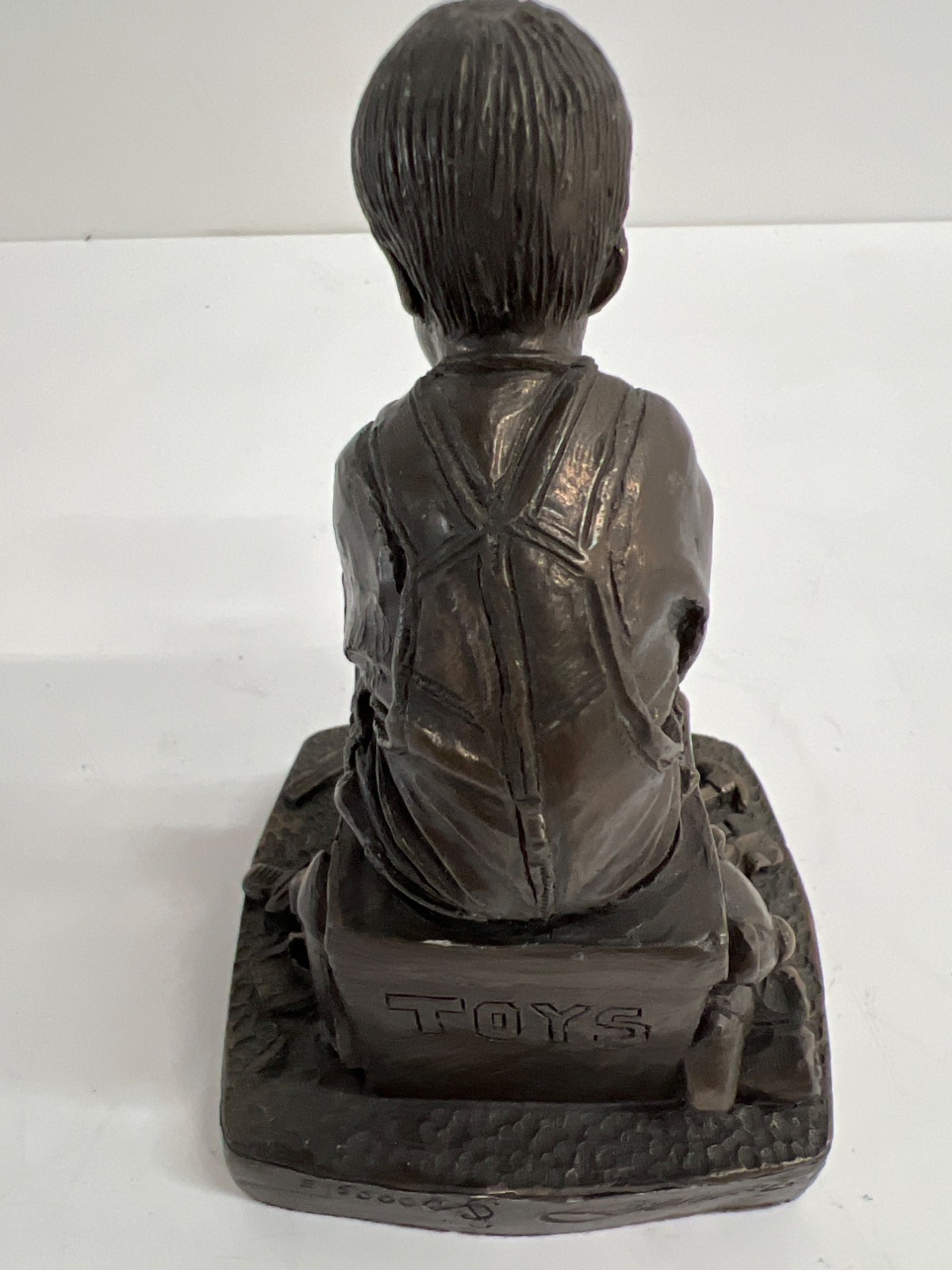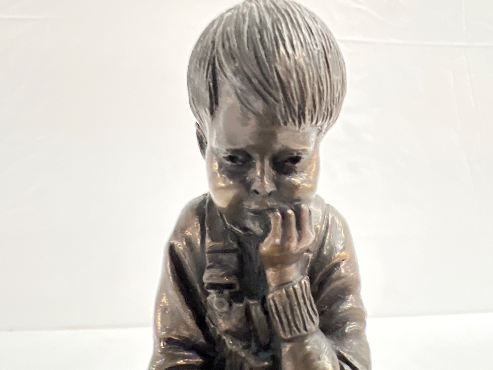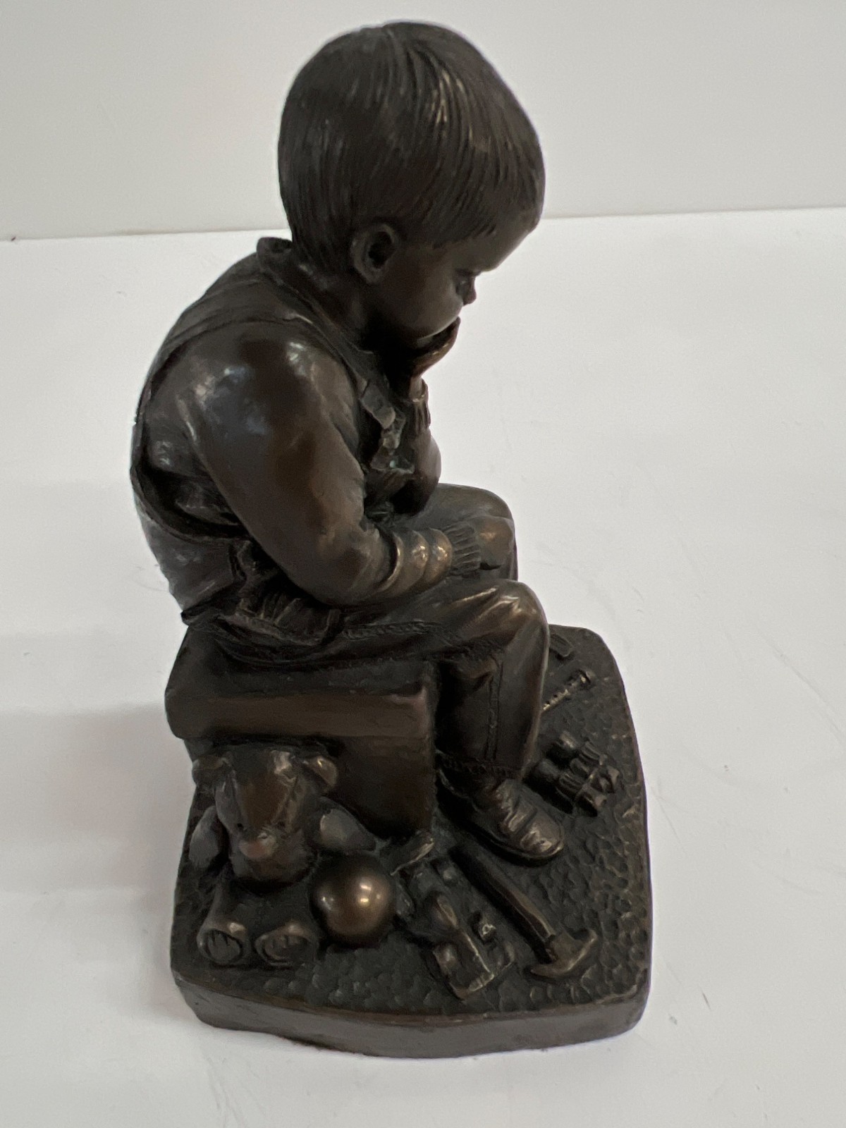 Genesis Fine Arts Sitting Down Thinking Boy Statue w/ Toys - Height 5 3/4"