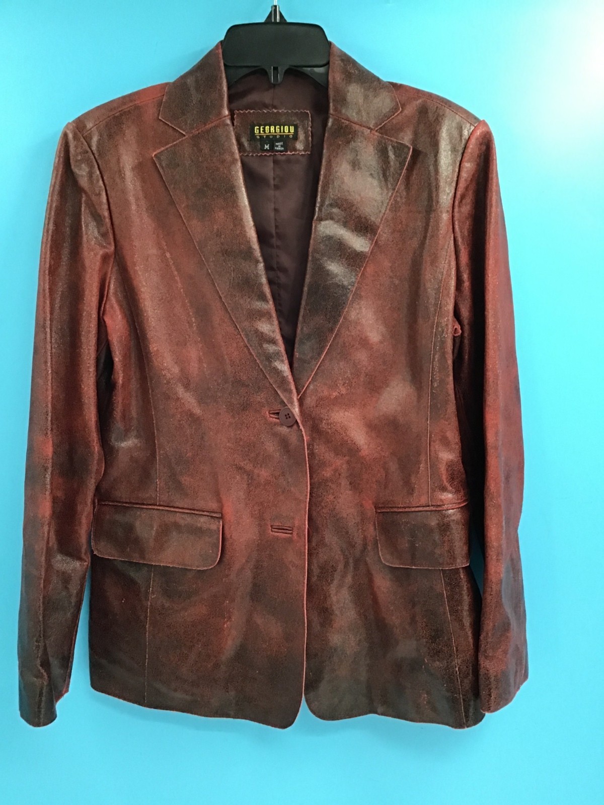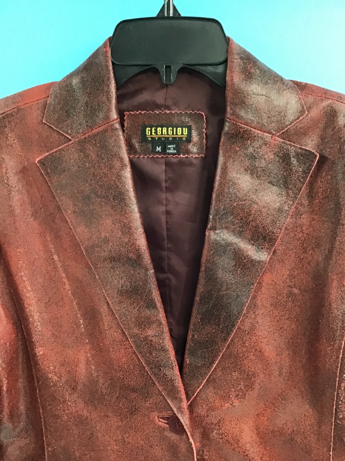 Georgiou Studio Burgundy Glaze Leather 2-Button Blazer Jacket (size M)