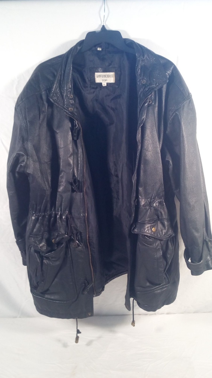 Gianfrancobassi Uomo XL Black Leather Jacket With Drawstring Waist & Pockets