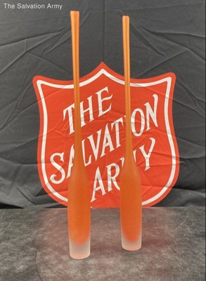 Global Views Orange Frosted Glass Spire Bottles Design Tall Modern Vase Lot Of 2