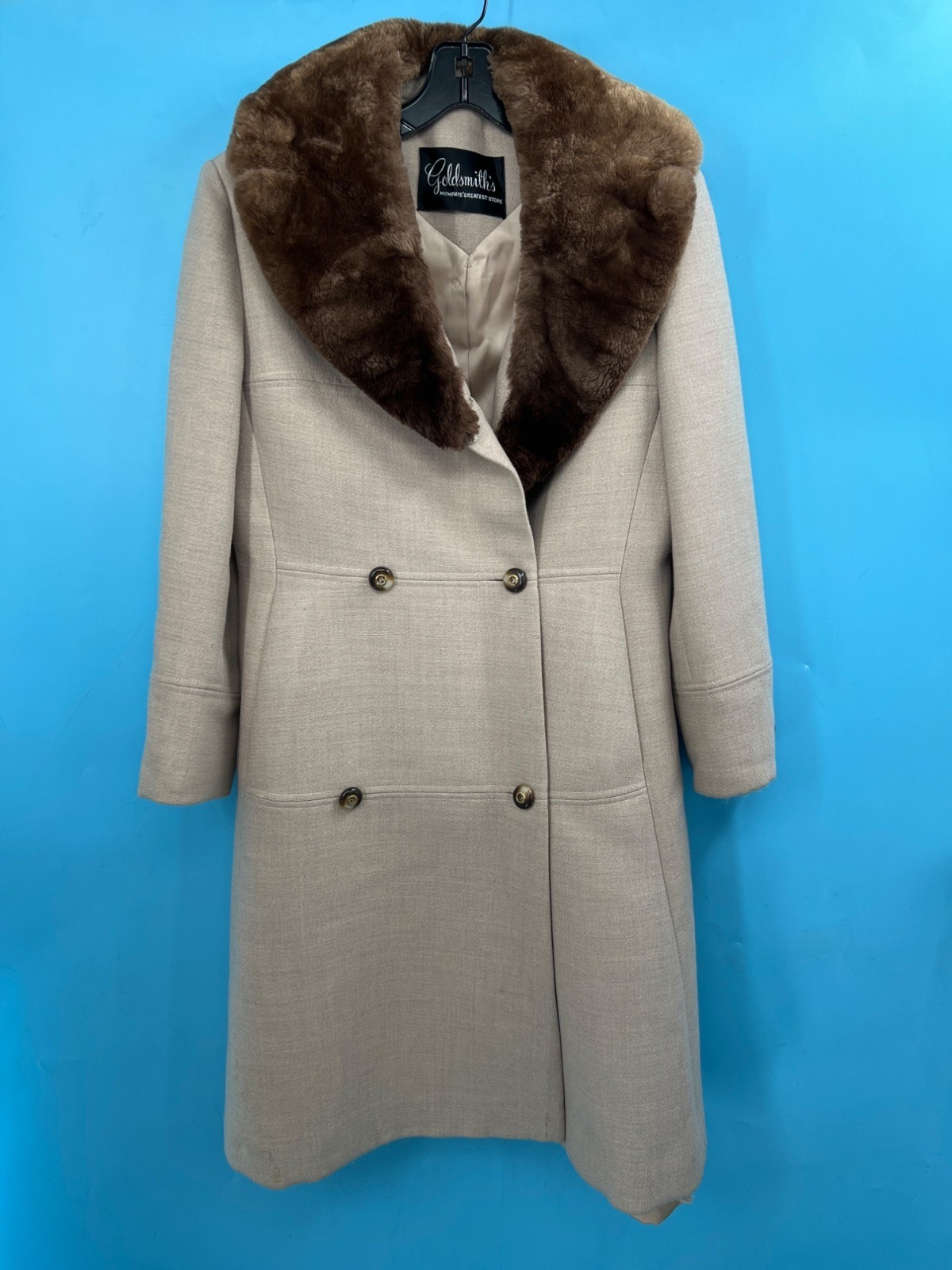 GOLDSMITH'S 100% Pure Virgin Wool Faux Fur Collar Beige Overcoat No Sz READ