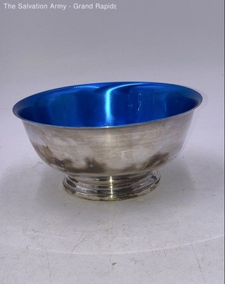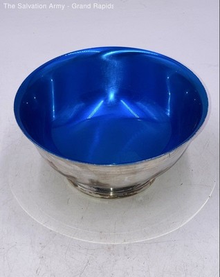 Gorham Silver Blue Enameled Interior Round Decorative Footed Serving Bowl