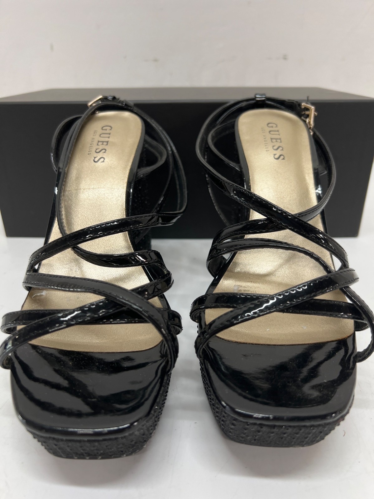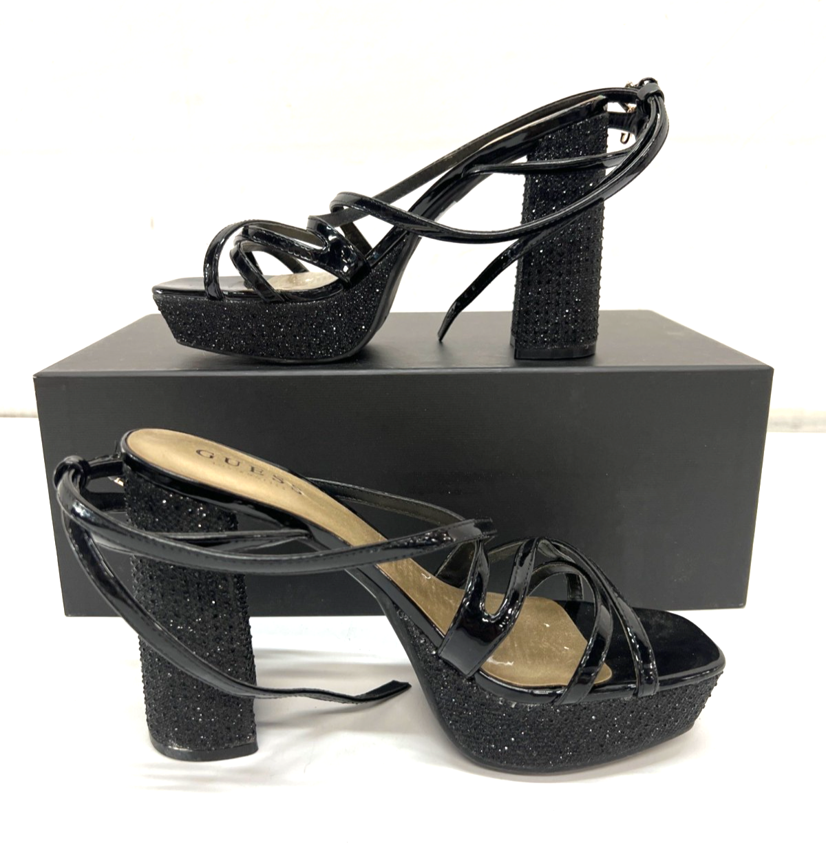 GUESS Goceane Black Platform Chunk Heel Sandals Size 8.5M