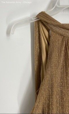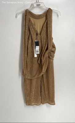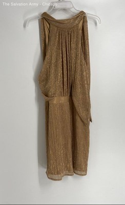 Halston Womens Gold Pleated Front Mock Neck Sleeveless Mini Dress Size 6