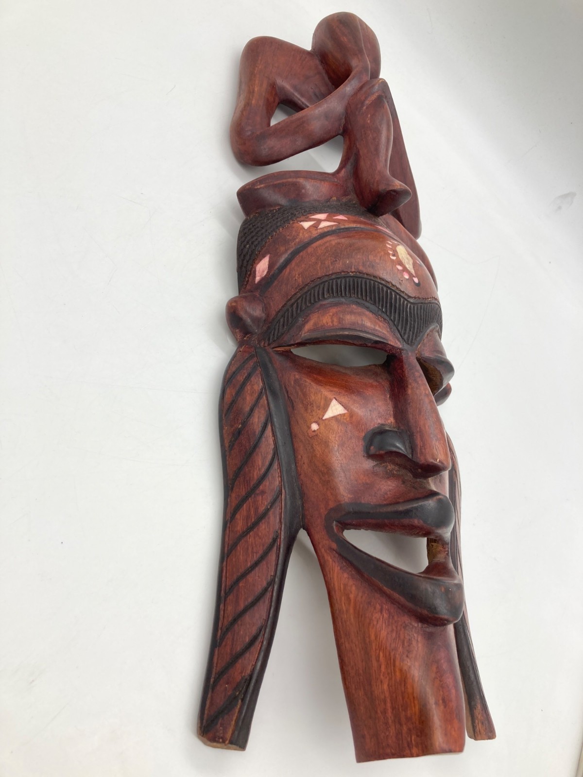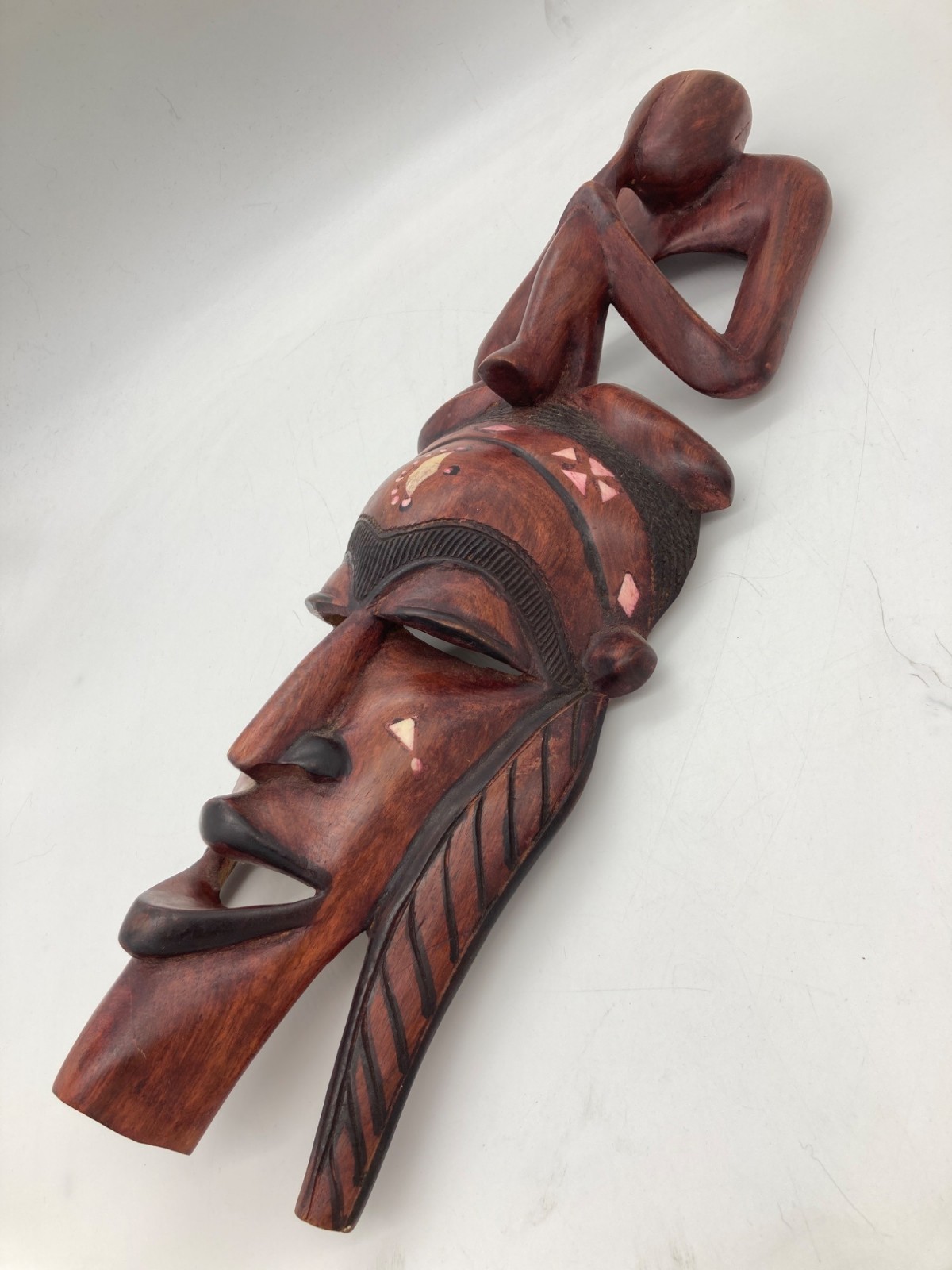 Hand-Carved African Tribal Face Mask With Figure Motif