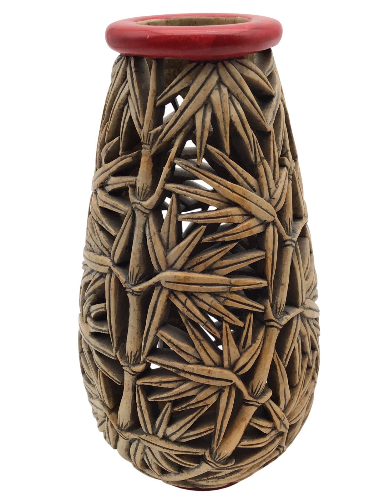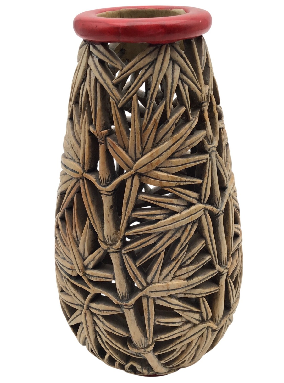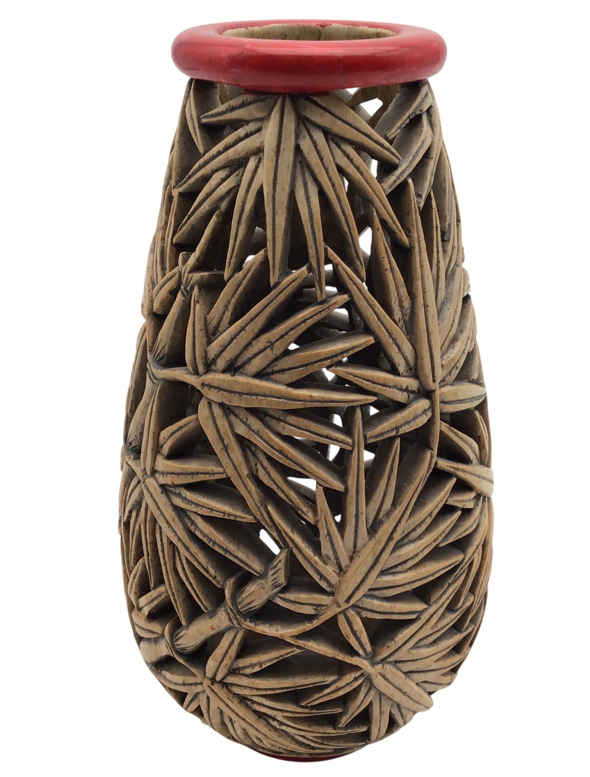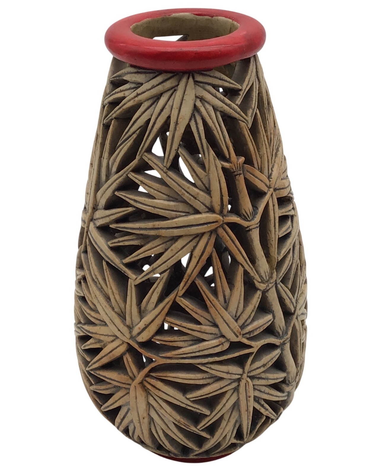 Handcrafted Bamboo Leaf Design Vase With Red Rim