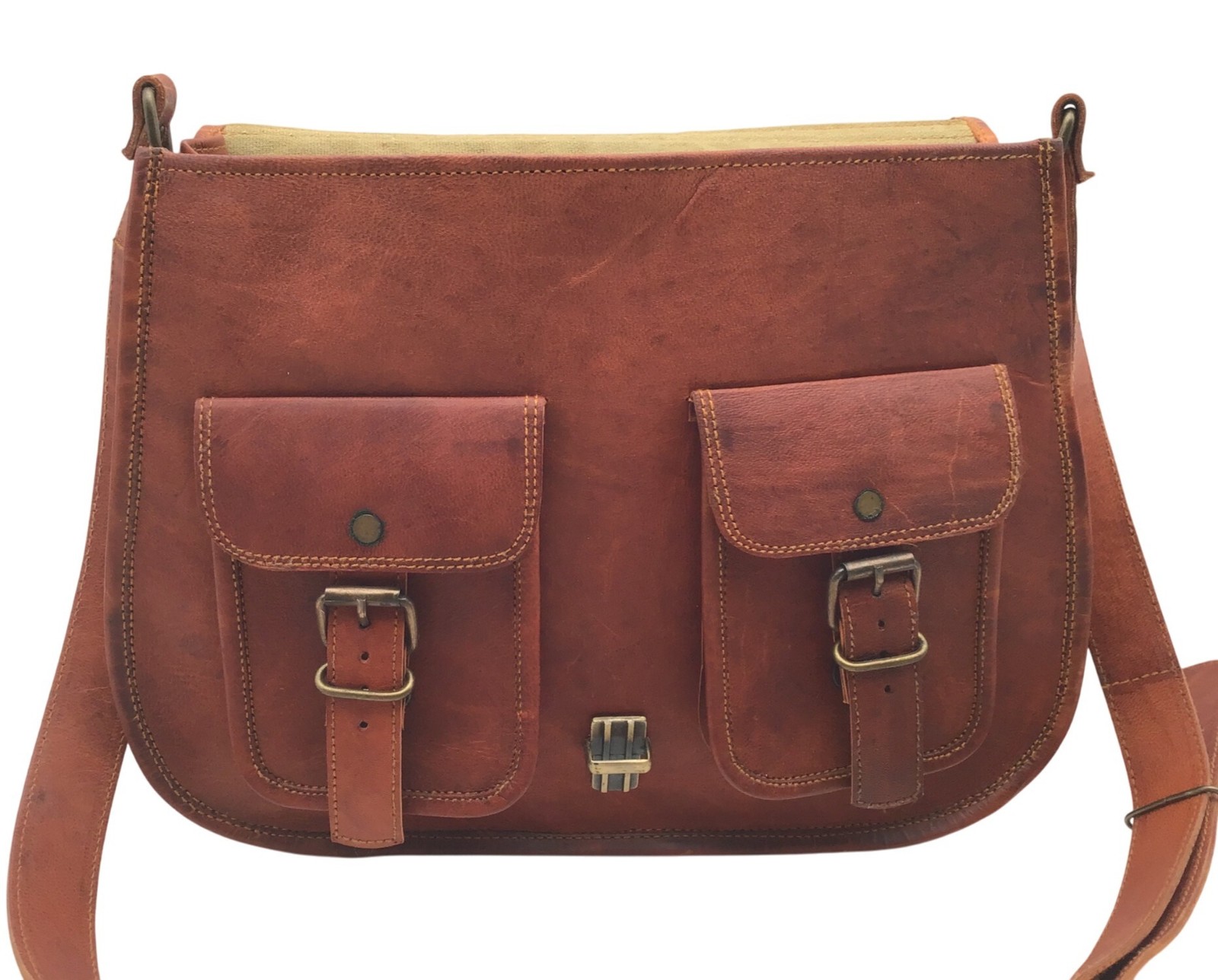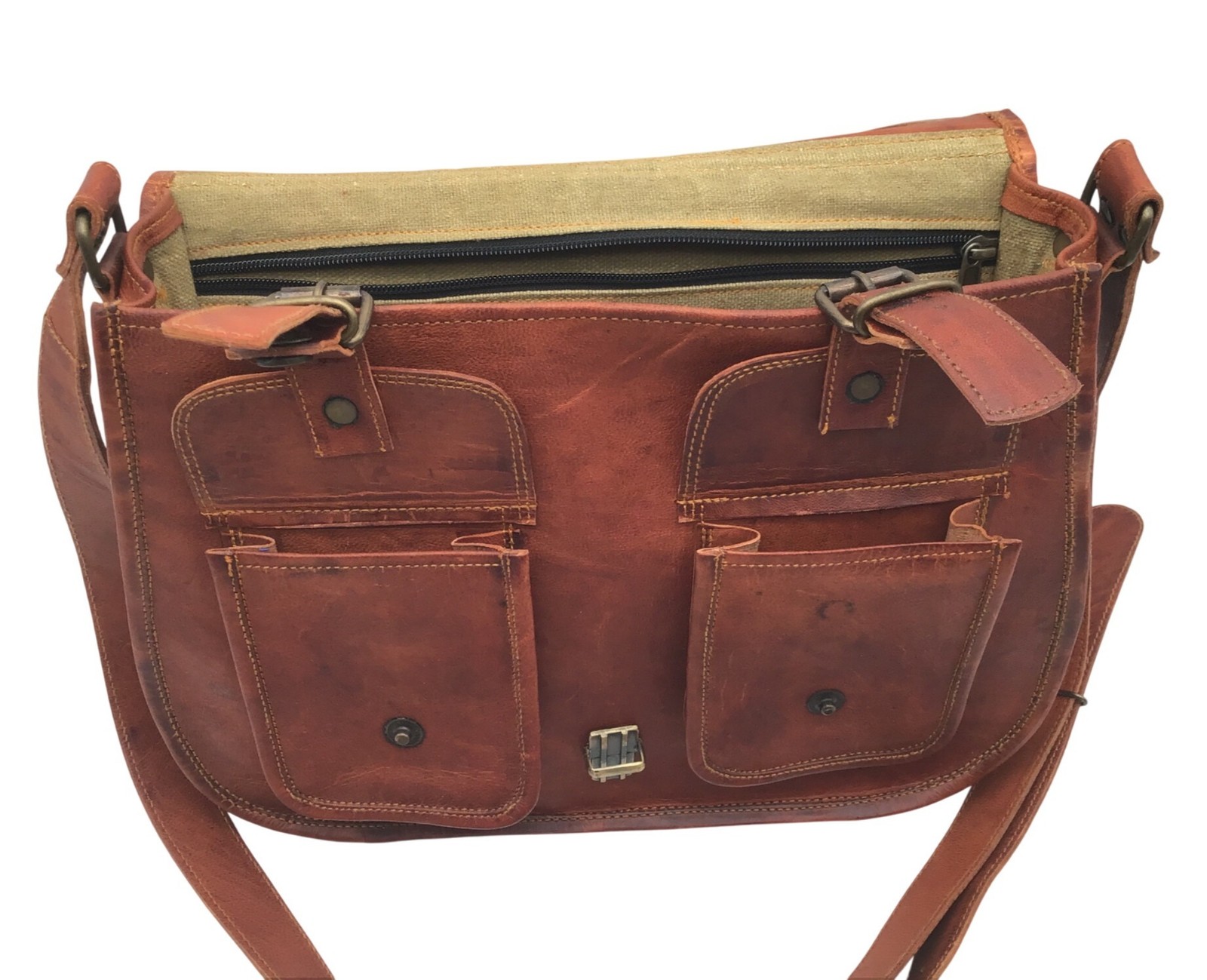 Handcrafted Vintage-Style Brown Leather Messenger Bag With Adjustable Strap
