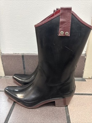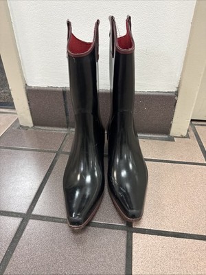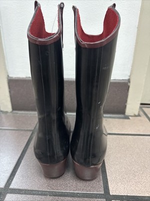 Henry Ferrera Black Pull-On Western Cowboy Rainboot/ Muck Boots with Red Accents