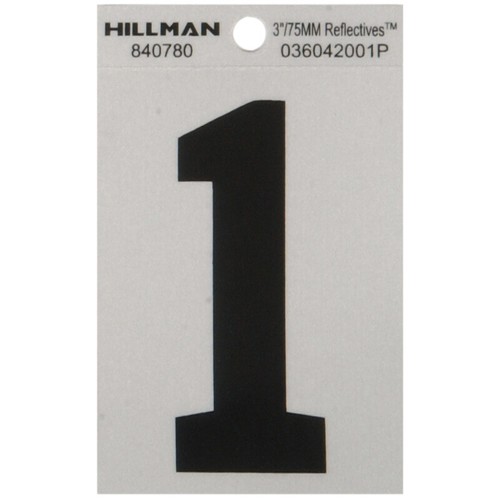Hillman 840780 Black/Silver Mylar Self-Adhesive #1 Number 3 H in. (Pack of 6)