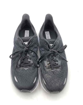 Hoka One One Womens Clifton 8 1119394 BWHT Black Lace-Up Sneaker Shoes Sz 10.5B