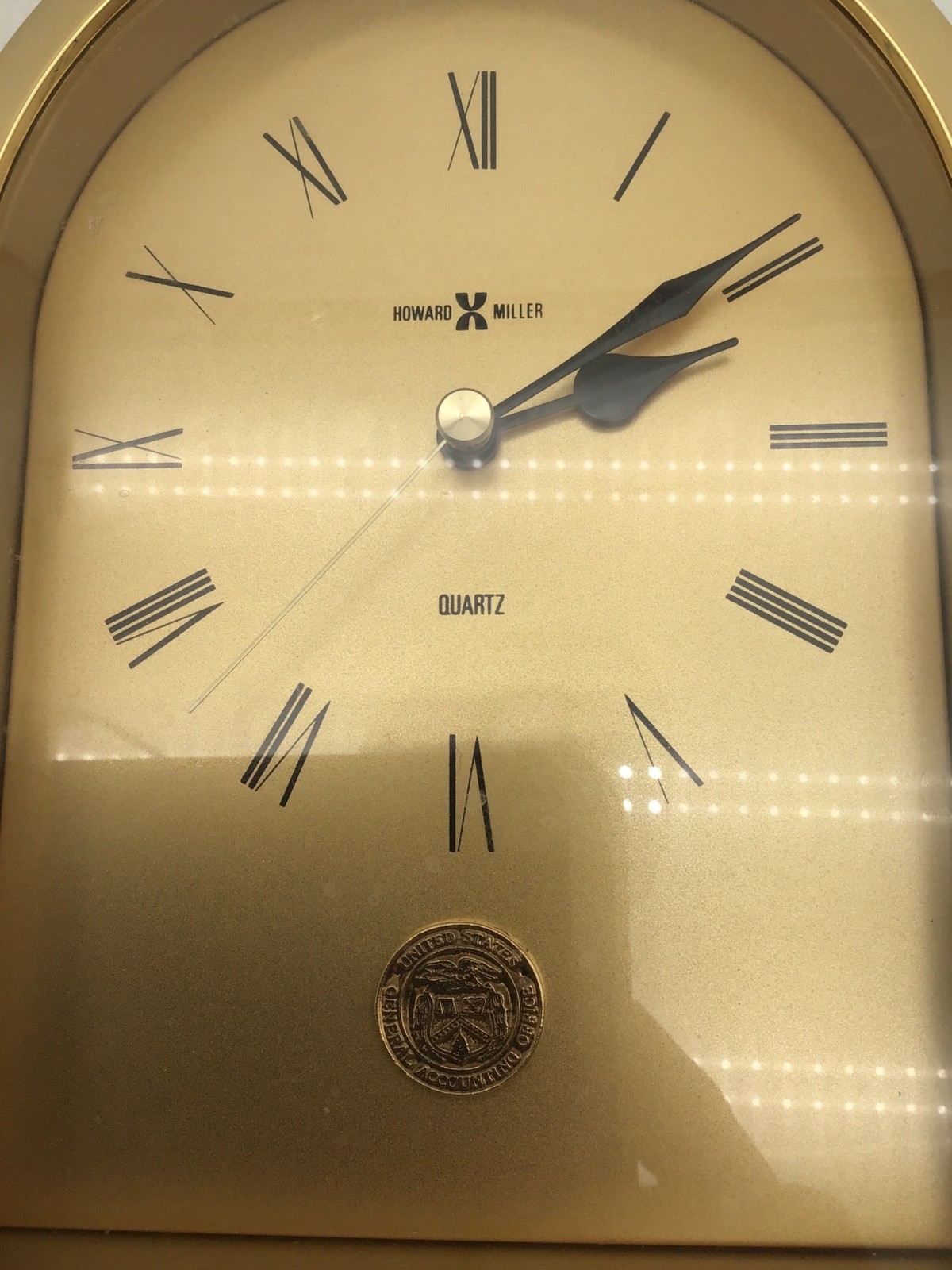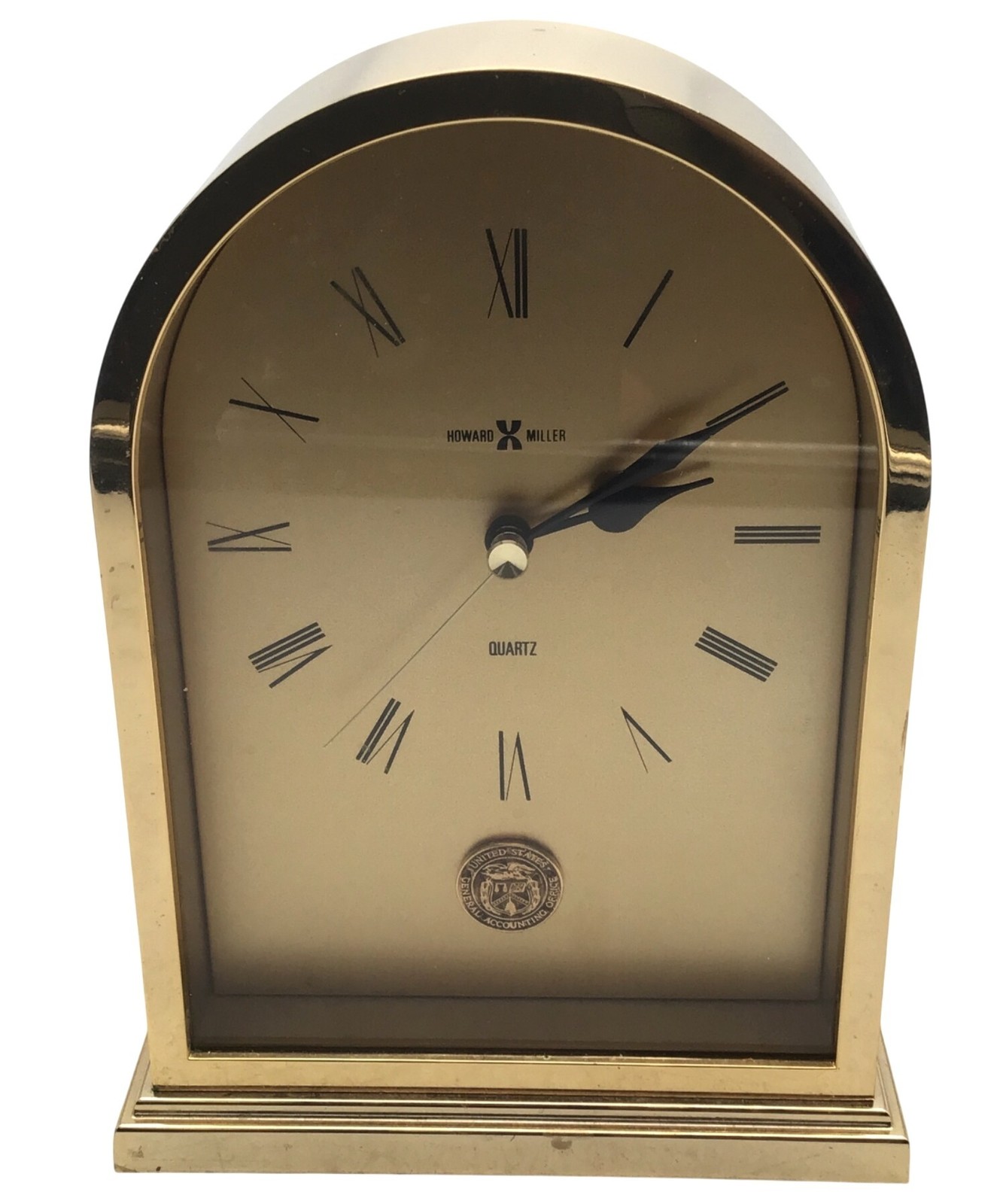 Howard Miller Gold Quartz Desk Clock With Roman Numerals - Working