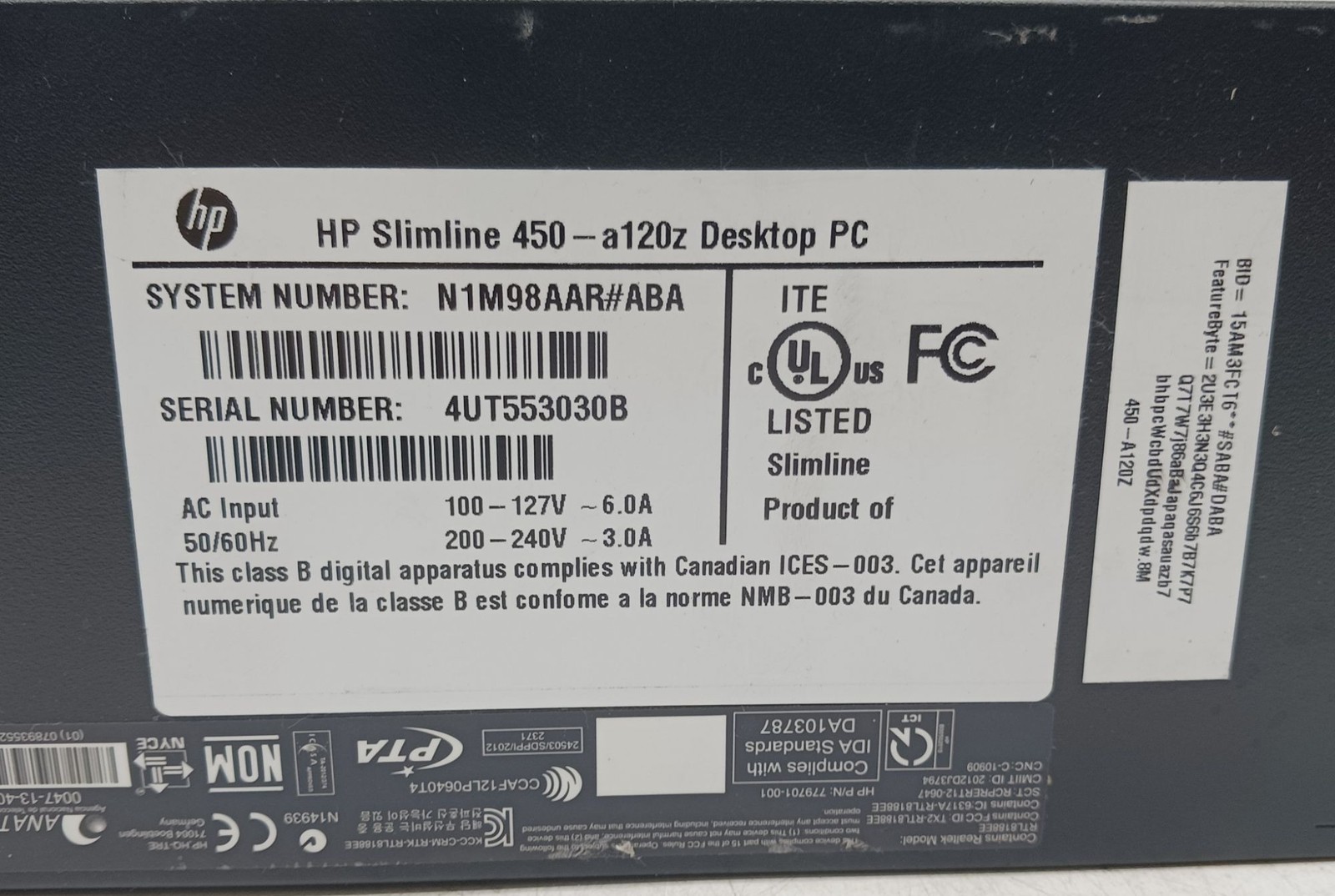 HP Slimline 450-A120Z Desktop PC - Untested