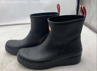Hunter Womens Black Waterproof Round Toe Pull On Ankle Rain Boots Size US 9 UK 7