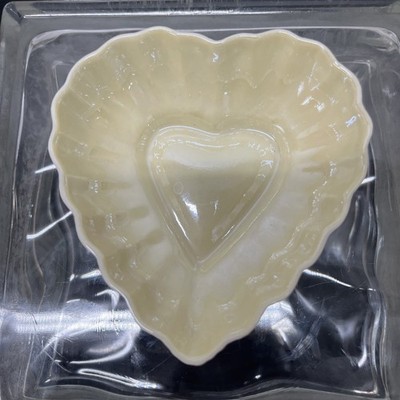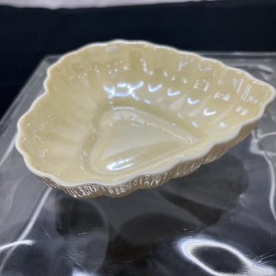 Irish Belleek Sweet Heart Shaped Candy Dish, Lustre Yellow 4.5" - 5th Mark Green