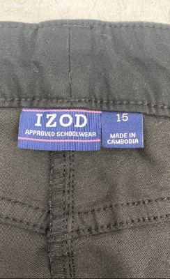 Izod Girls Black Flat Front Approved Schoolwear Easy Care Bermuda Shorts Size 15