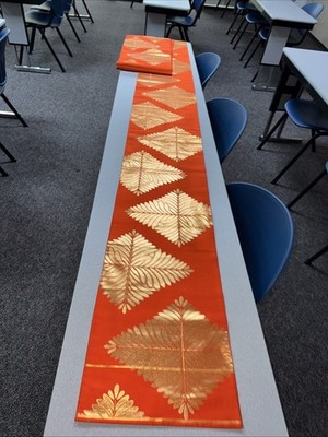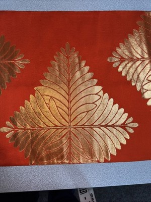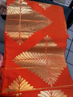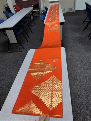 Japanese Vintage Kimono Fukuro Obi pure silk orange Tradition gorgeous 167x11in