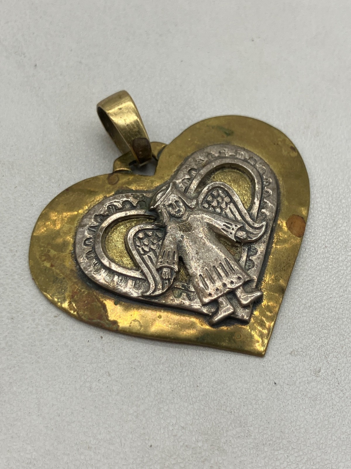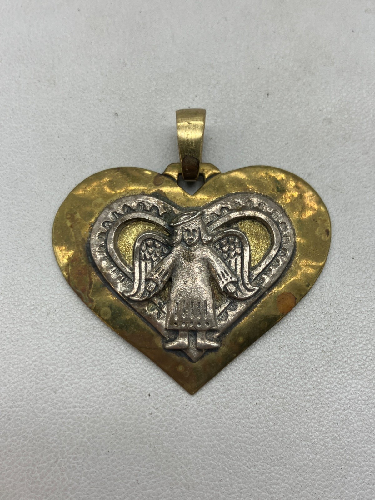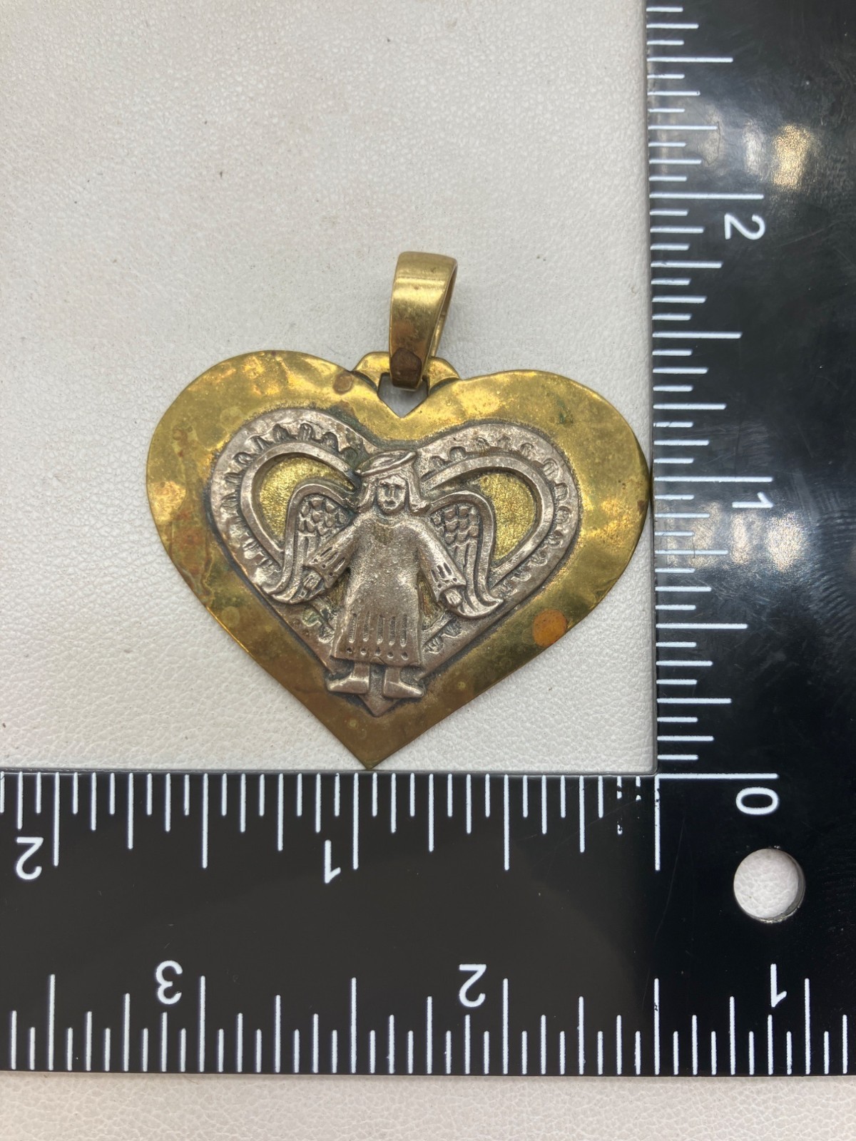 JEEP COLINS Brass Heart & Sterling Silver Angel Pendant - 14.1g