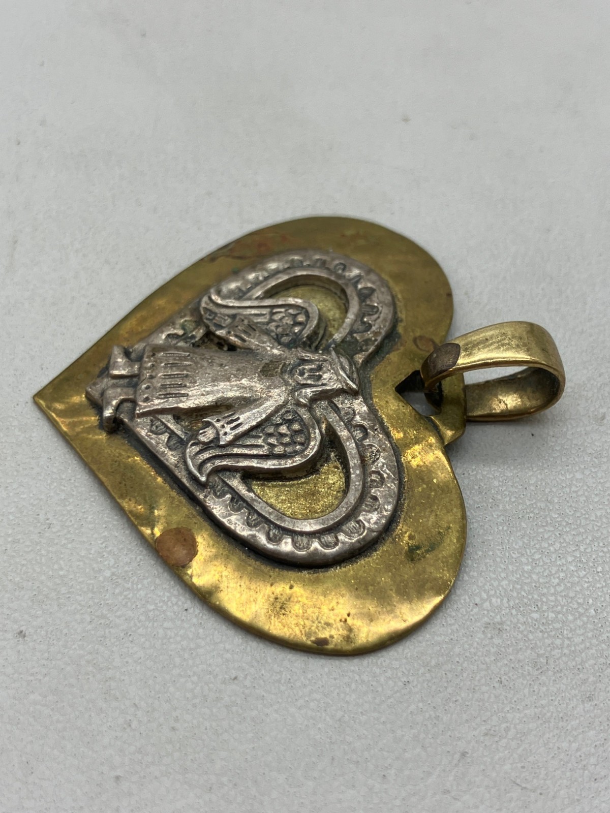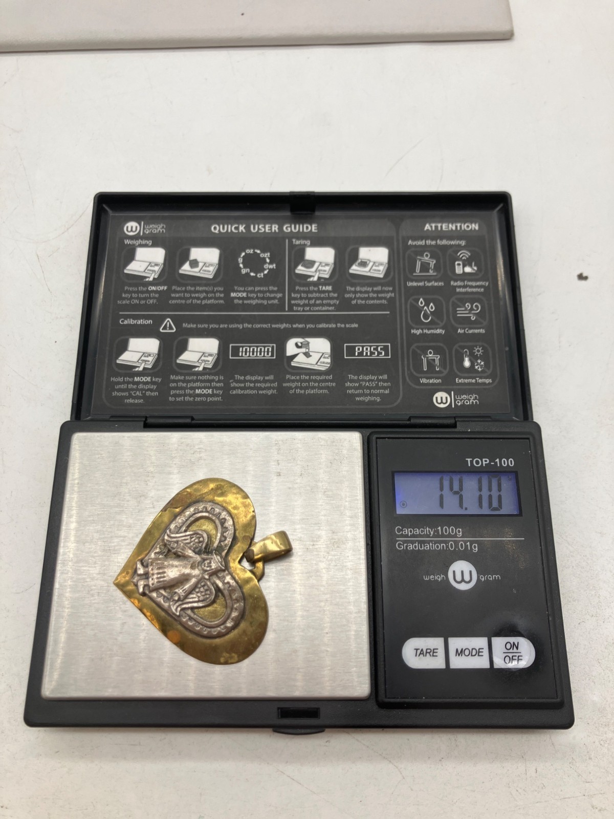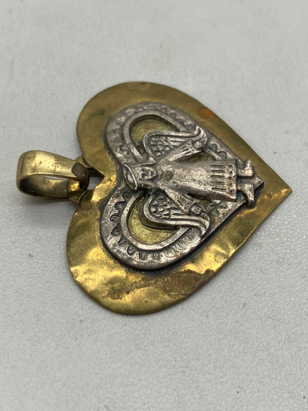JEEP COLINS Brass Heart & Sterling Silver Angel Pendant - 14.1g