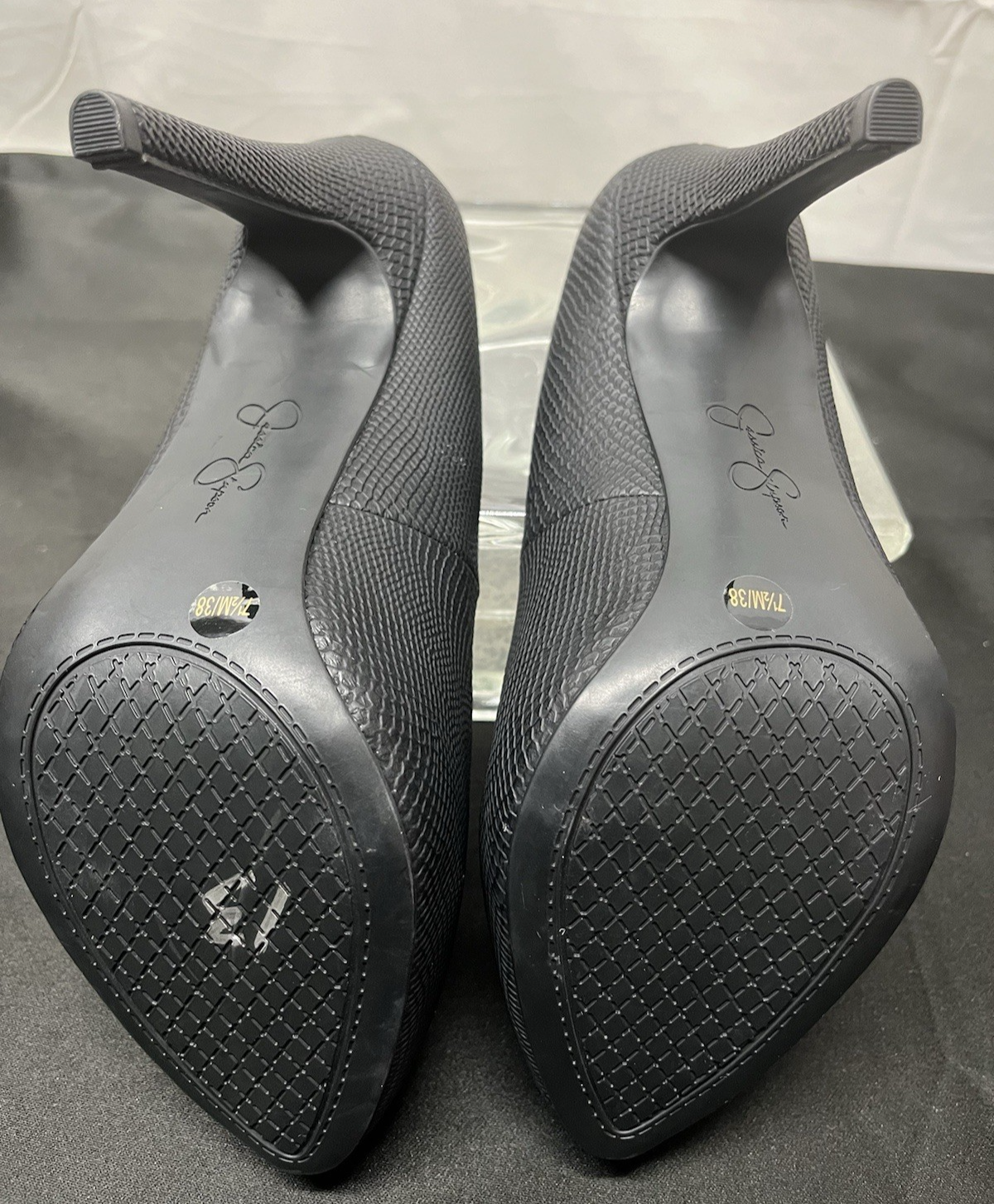 JESSICA SIMPSON Parisah Black Snake Hidden Platform Pumps Stilettos Size 7.5 M