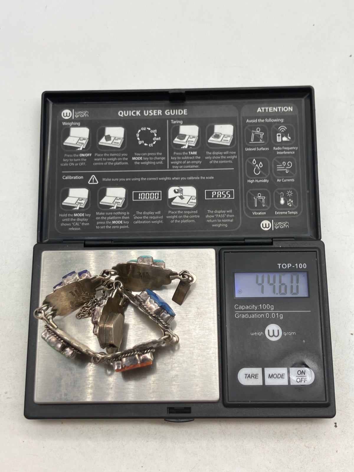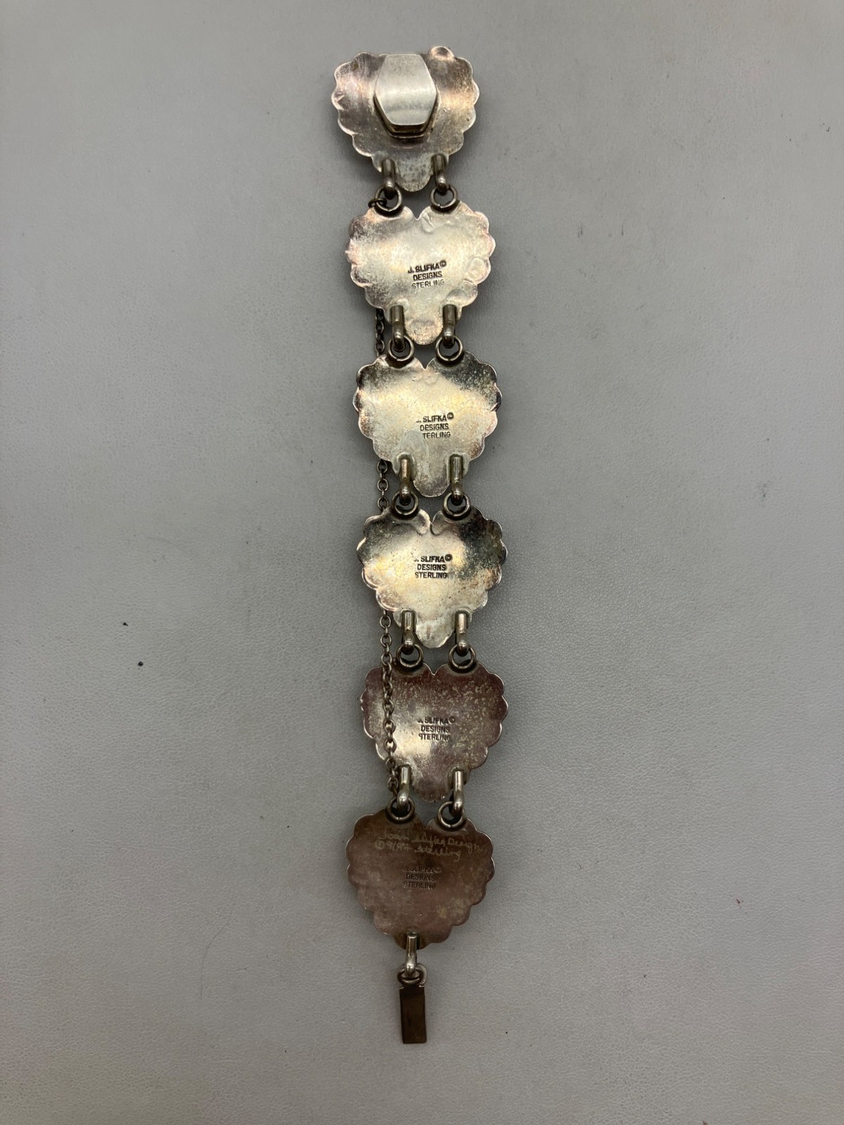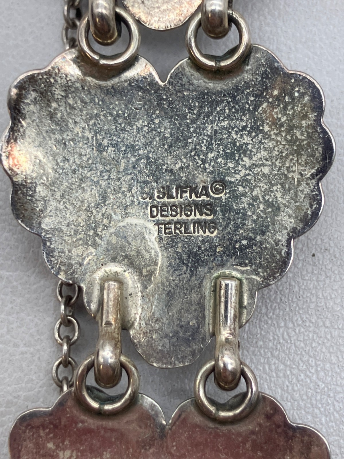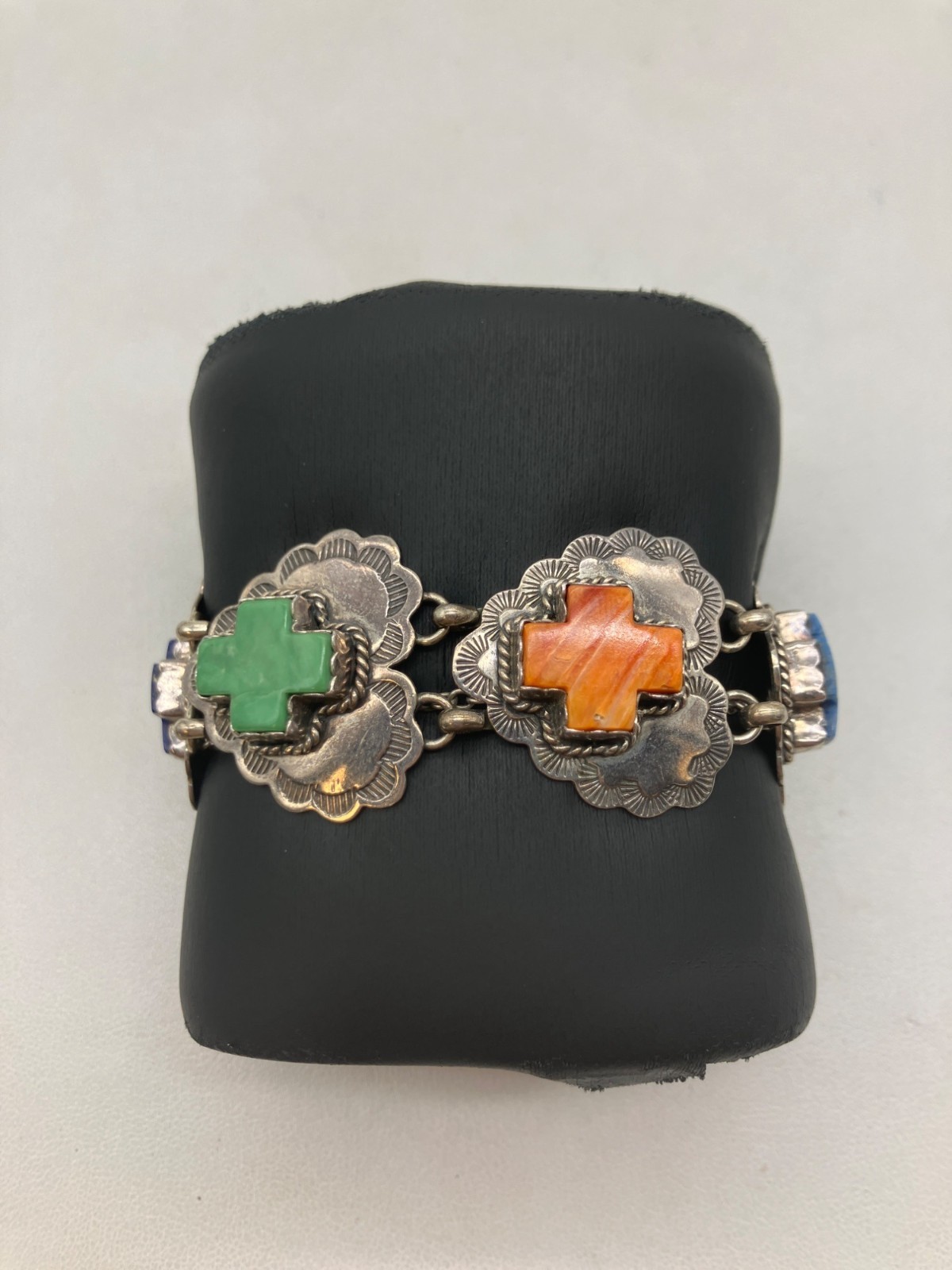 JOAN SLIFKA Sterling Silver Multi-Stone Cross & Heart Bracelet 6.75in - 44.6g