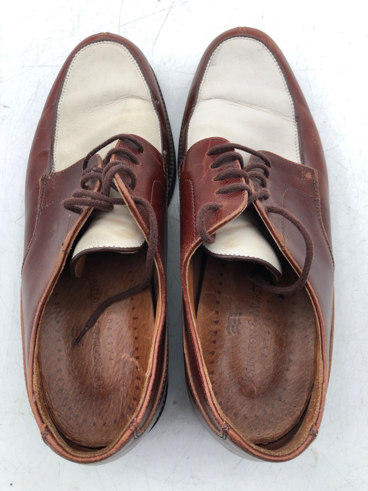 Johnston & Murphy Mens Vintage Brown & White Ivory Lace up Dress Shoes- 8.5