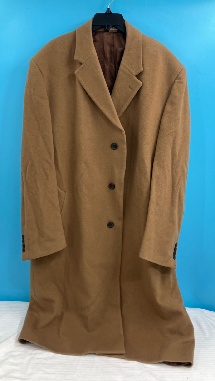 Jos. A. Bank Mens Classic Camel Overcoat 48L Wool Blend Lined