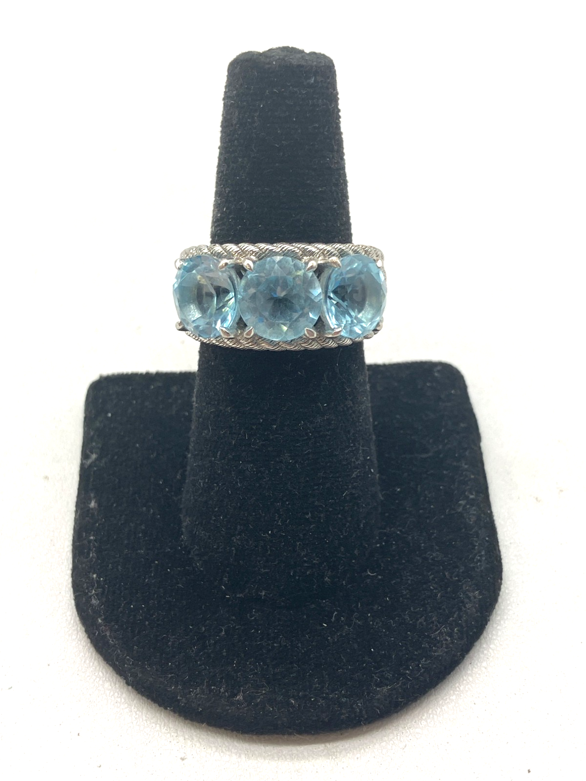 JUDITH RIPKA 925 Silver Blue Topaz Ring Size 7 - 14.94g