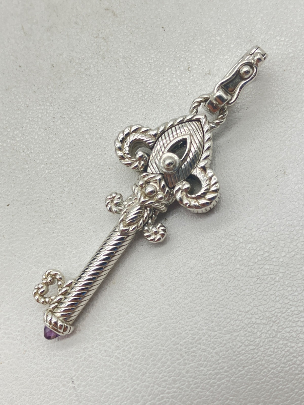 JUDITH RIPKA 925 Silver CZ & Amethyst Key Pendant - 10.17g