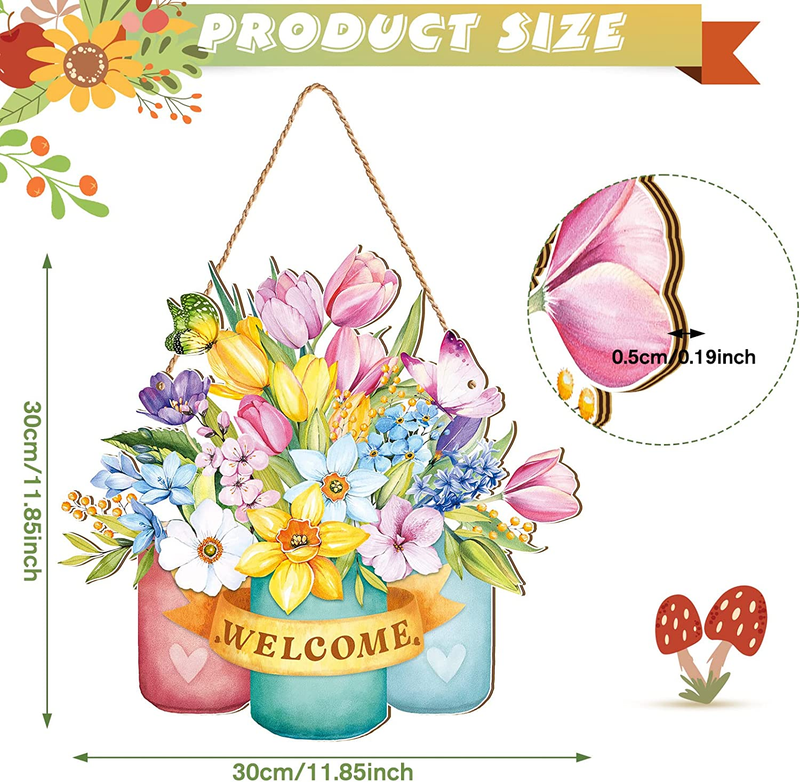 Juexica Spring Door Decor Flower Welcome Door Sign Spring Door Hanger for Front