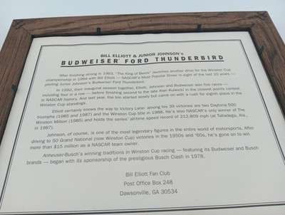 Junior Johnson Autographed Bill Elliot Racing Photo With Frame NASCAR 10.5 X12.5
