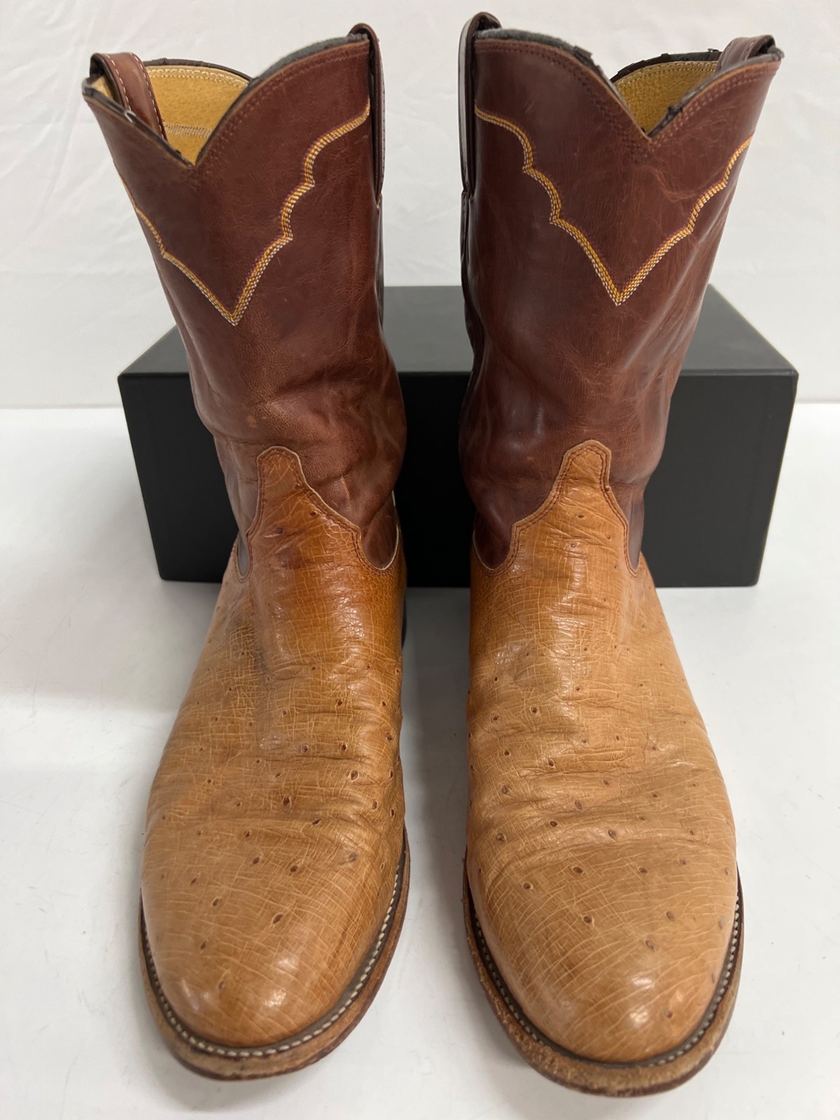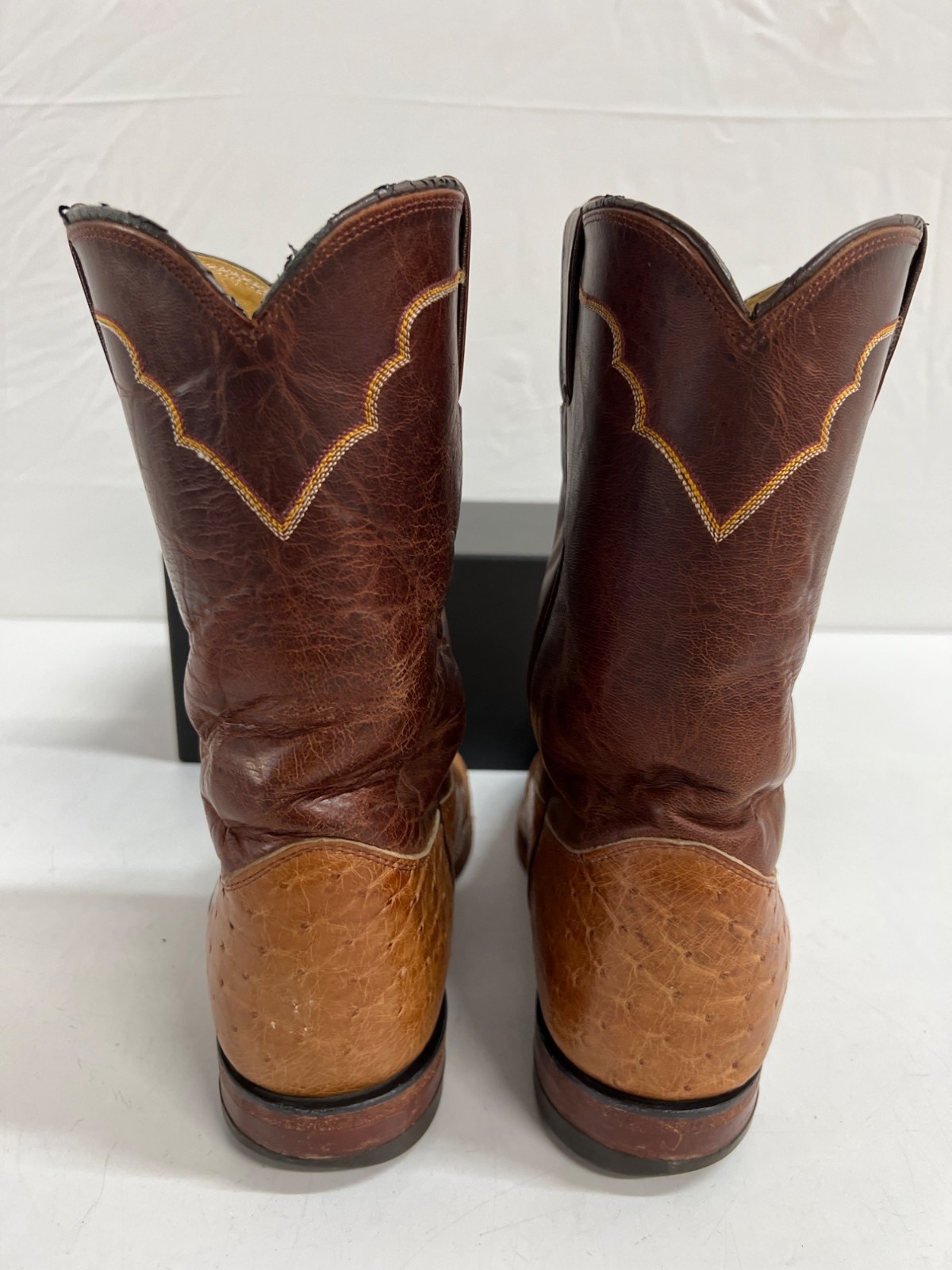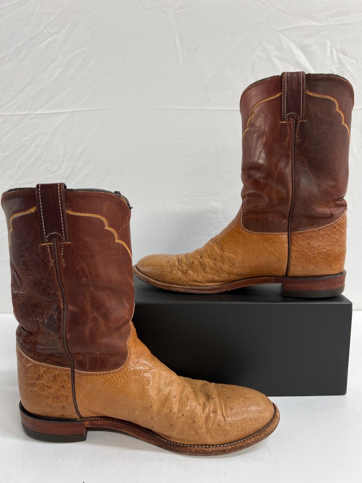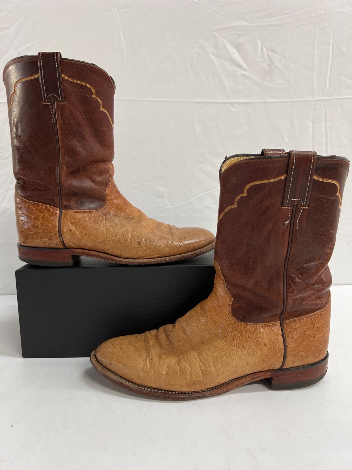 Justin Exotic Roper Brown Leather Smooth Ostrich Cowboy Western Boots-Size 10.5D