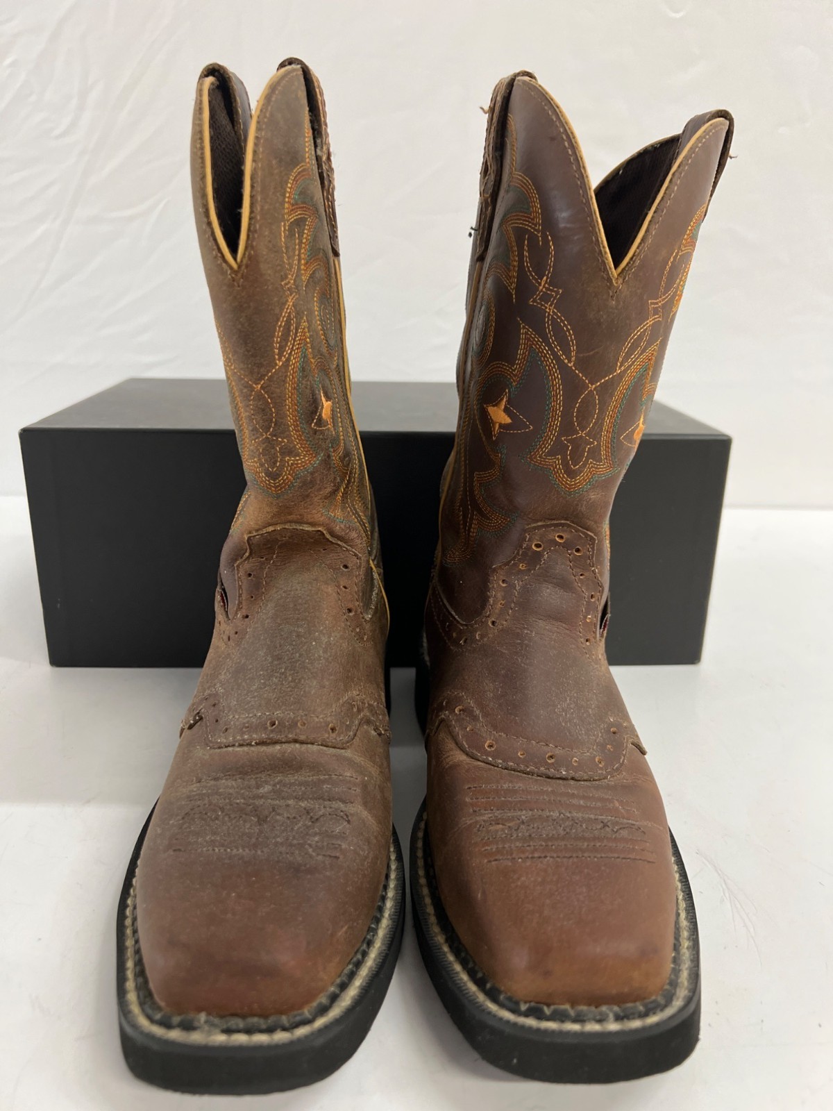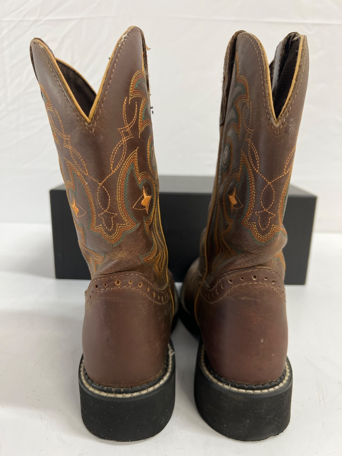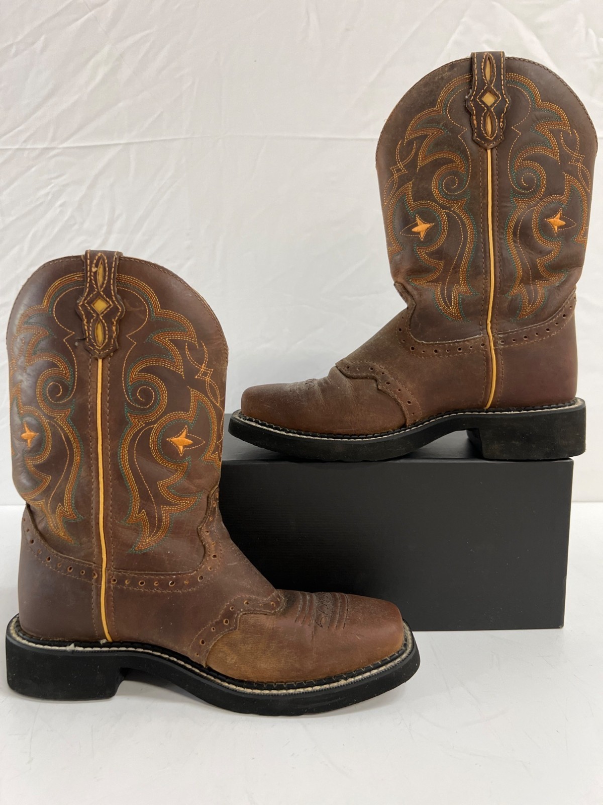 Justin Gypsy Collection Square Toe Brown Leather Womens Cowgirl Boots -Size 6.5B