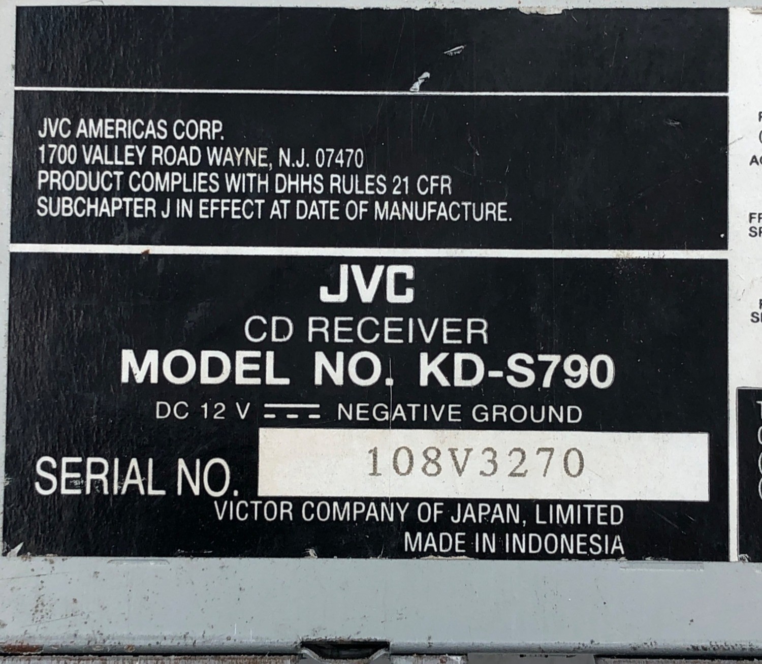 JVC KD S790 Vintage Cd Player Car Stereo Receiver UNTESTED 200w Audio System