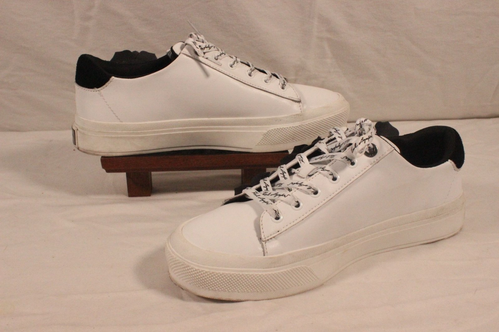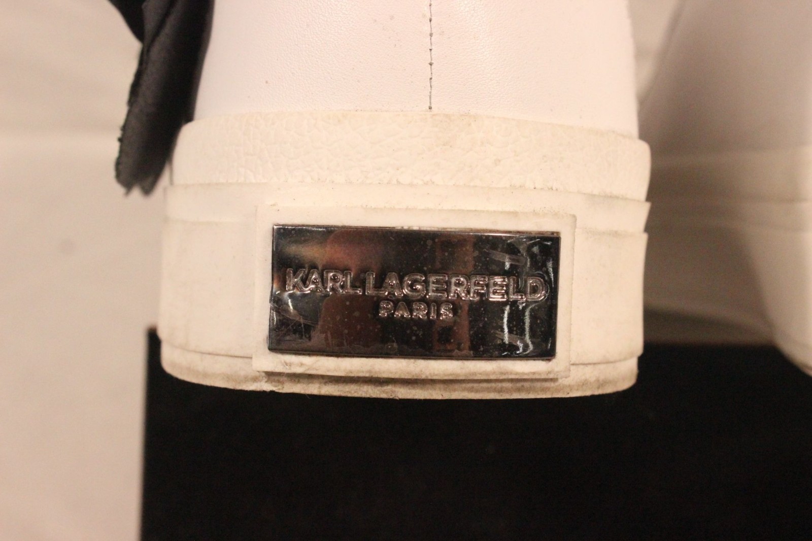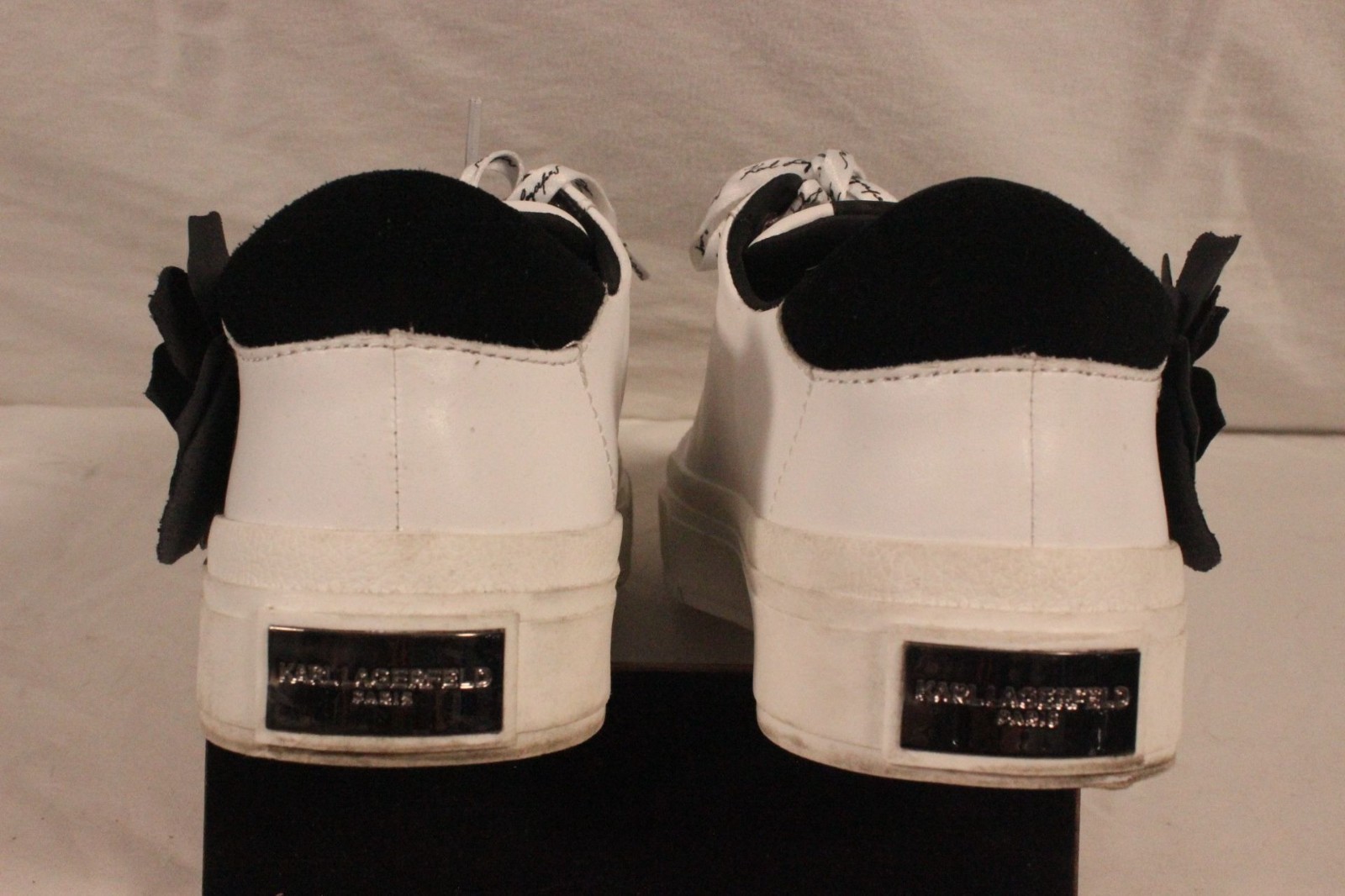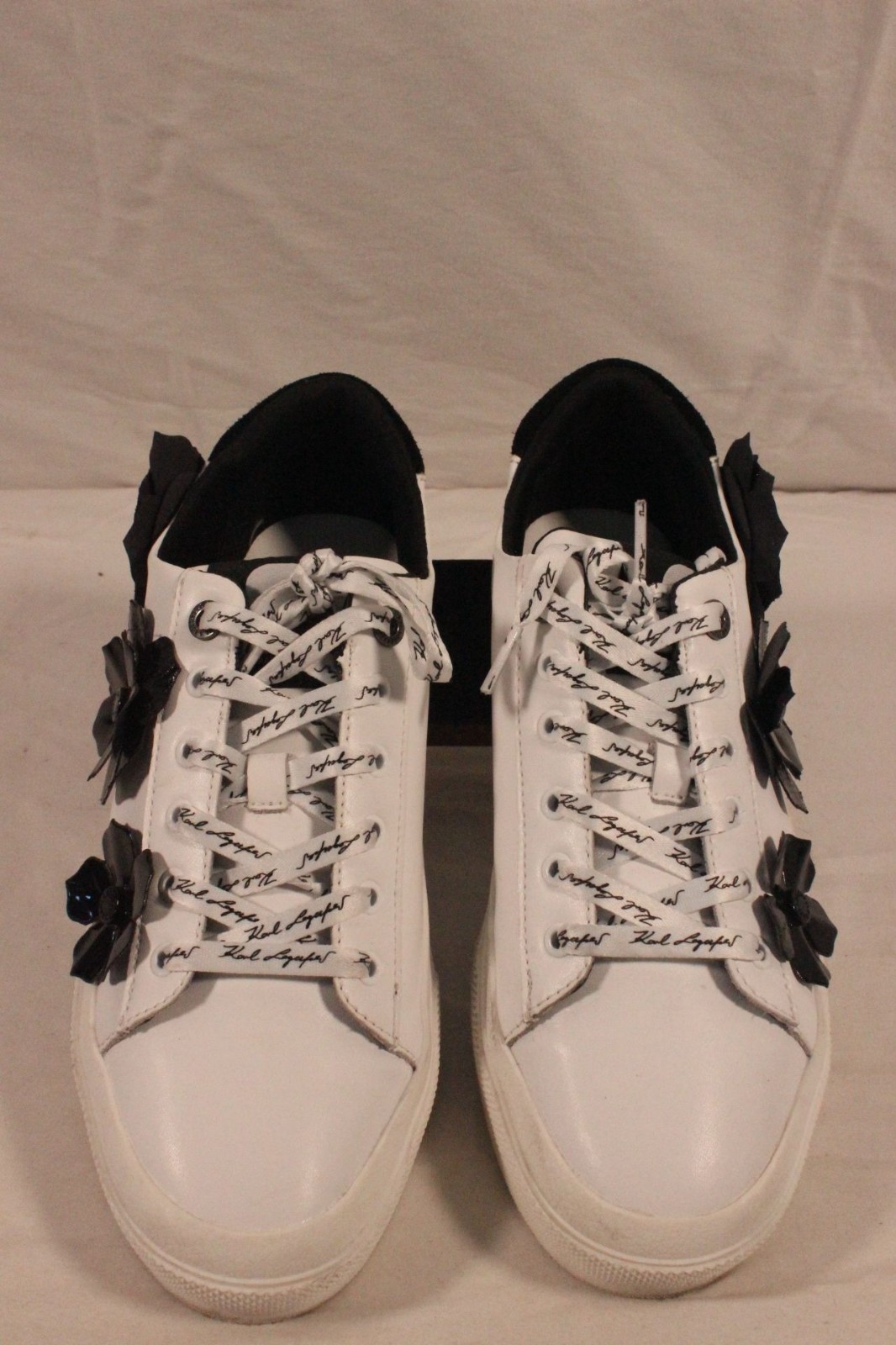 Karl Lagerfeld Paris White Low-Top Sneakers With Black Floral Embellishments Wom