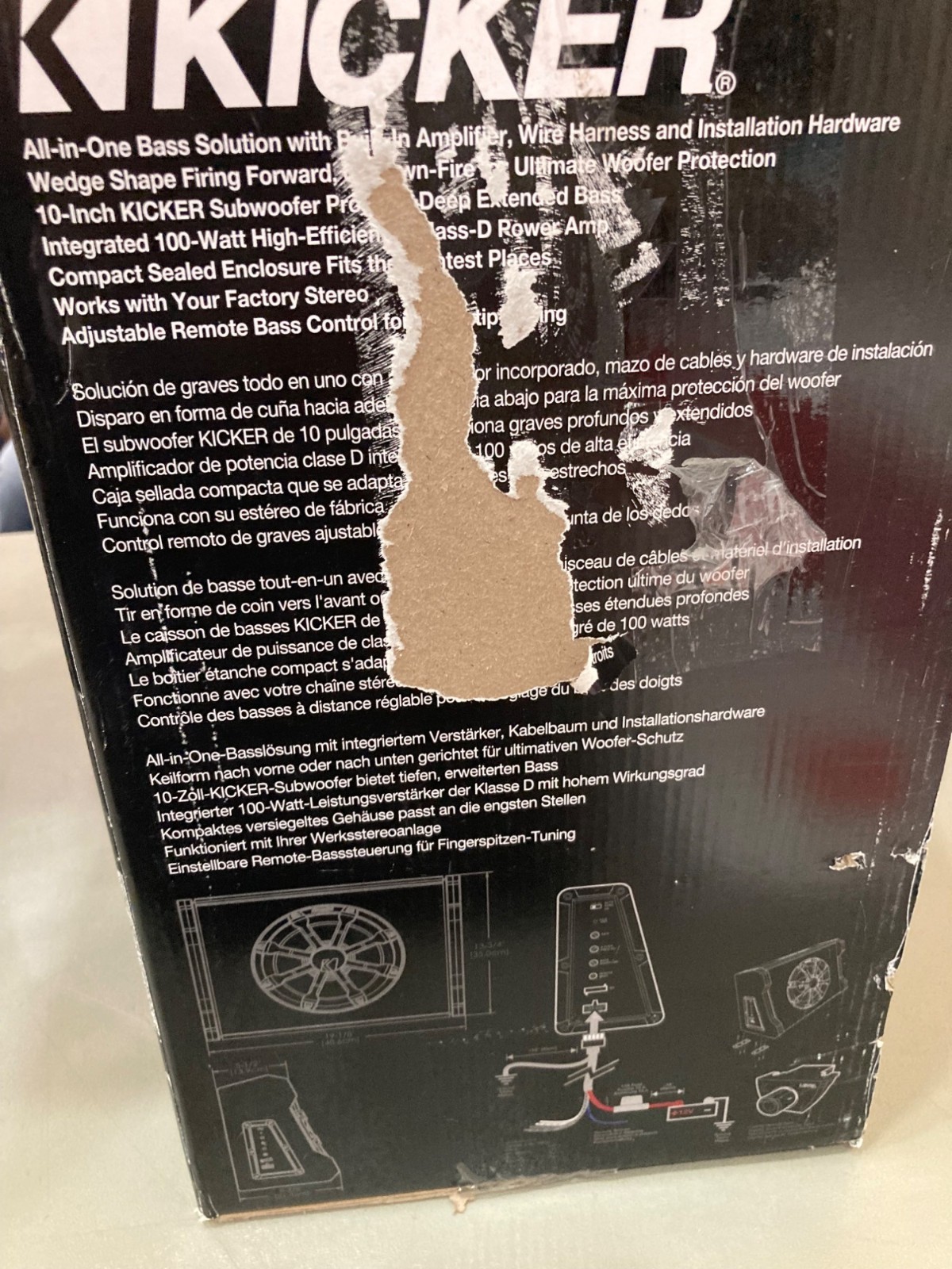 Kicker 10 Inch 100W Dual Mount Powered Subwoofer Car Audio System Open Box
