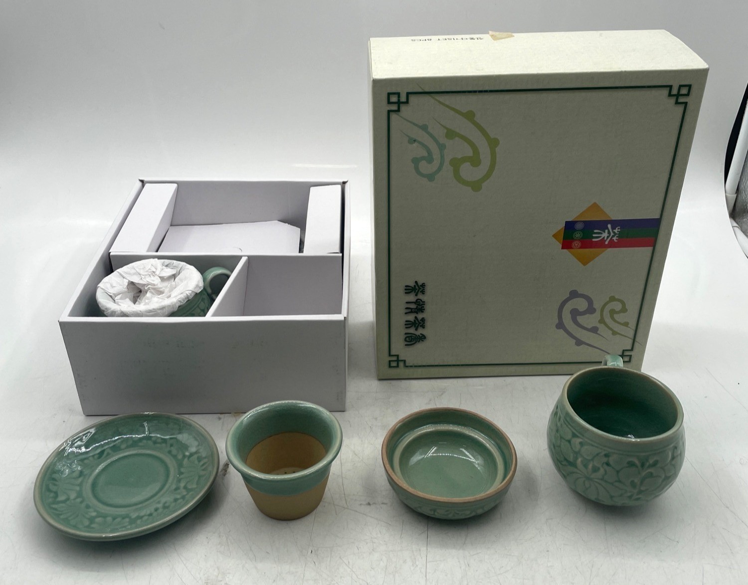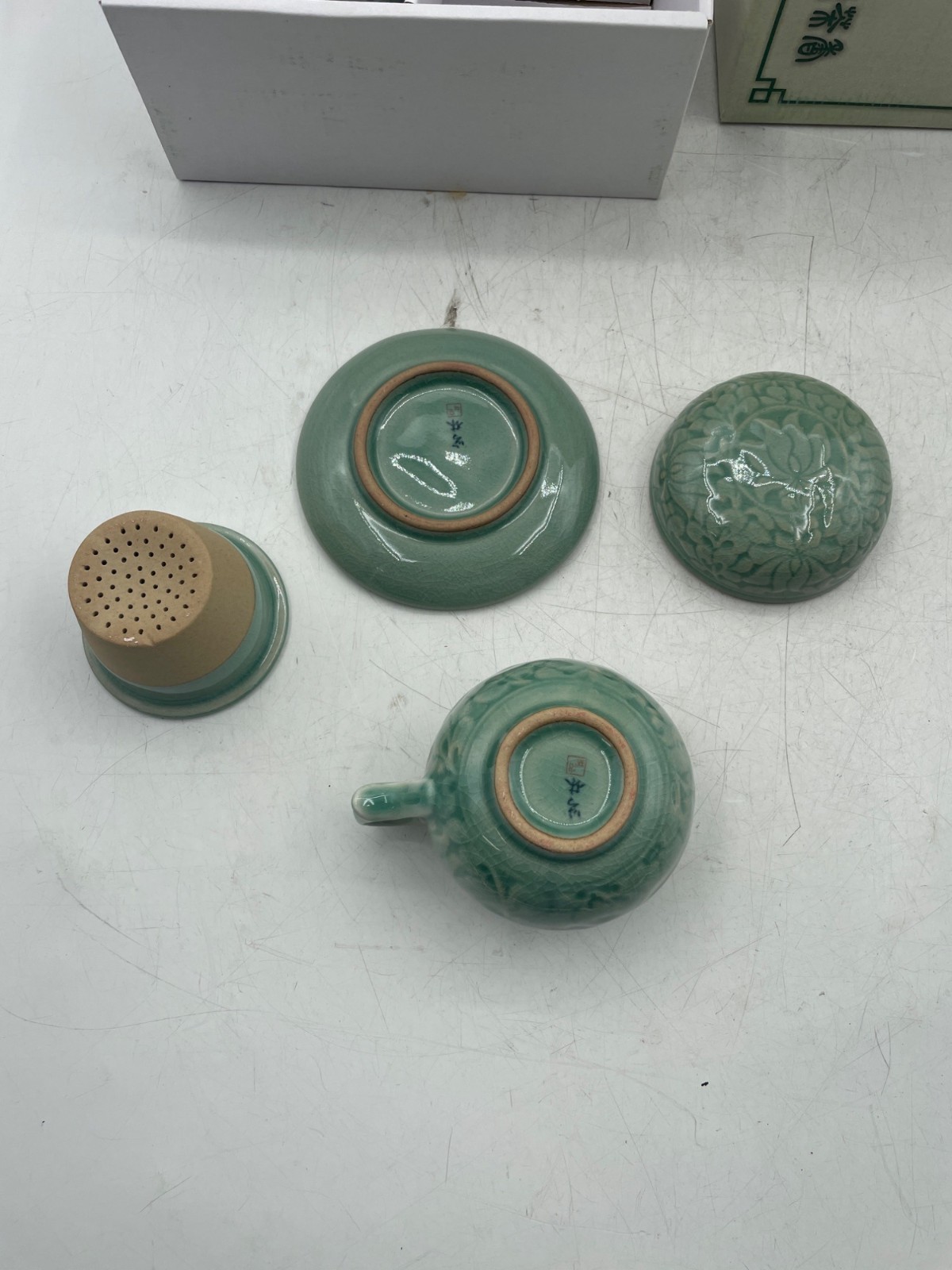 Korean Celadon Ceramic Tea Infuser Set – 4pc Handcrafted Green Crackle Glaze