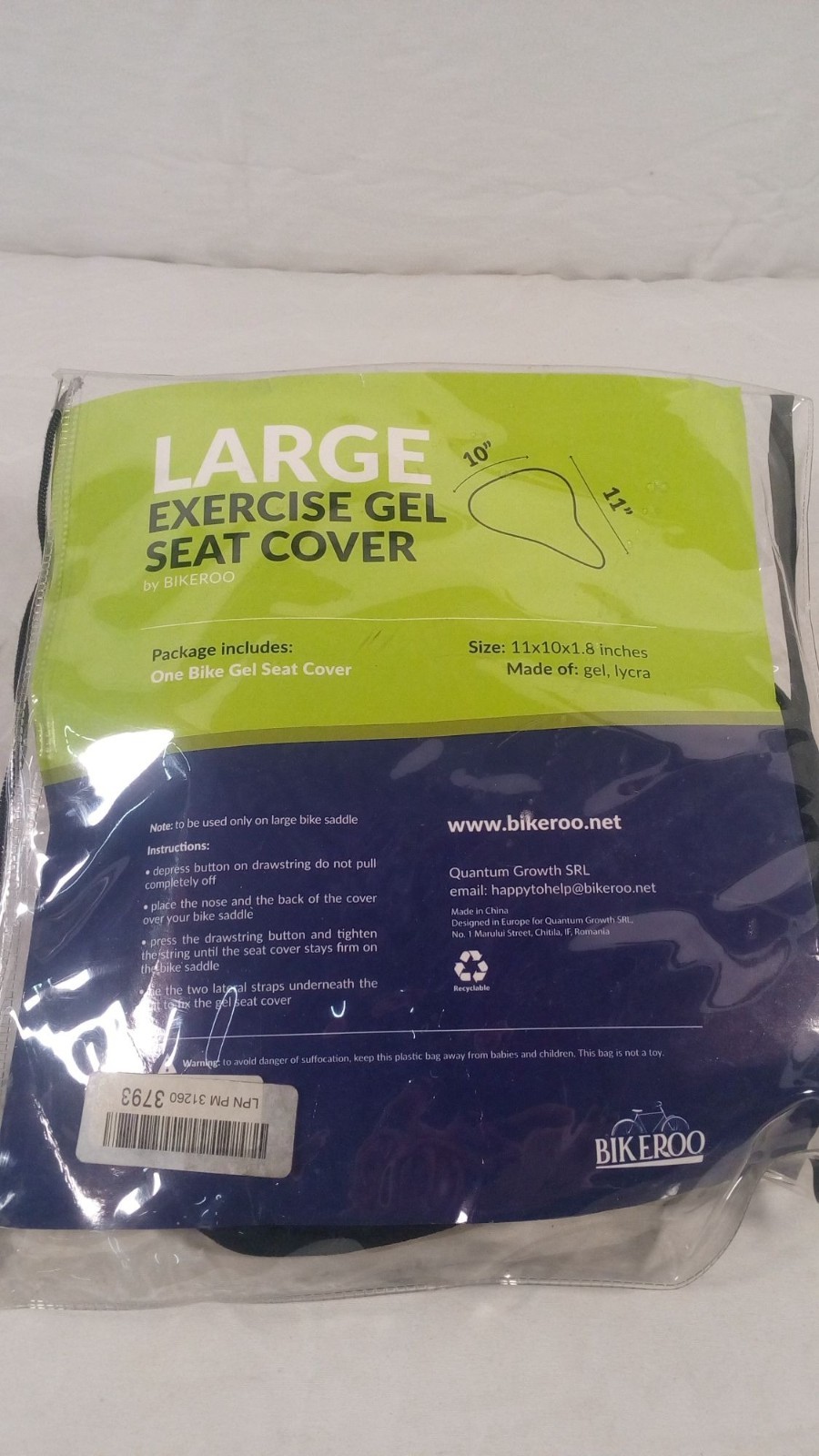 Large Bikeroo Exercise Gel Seat Cover