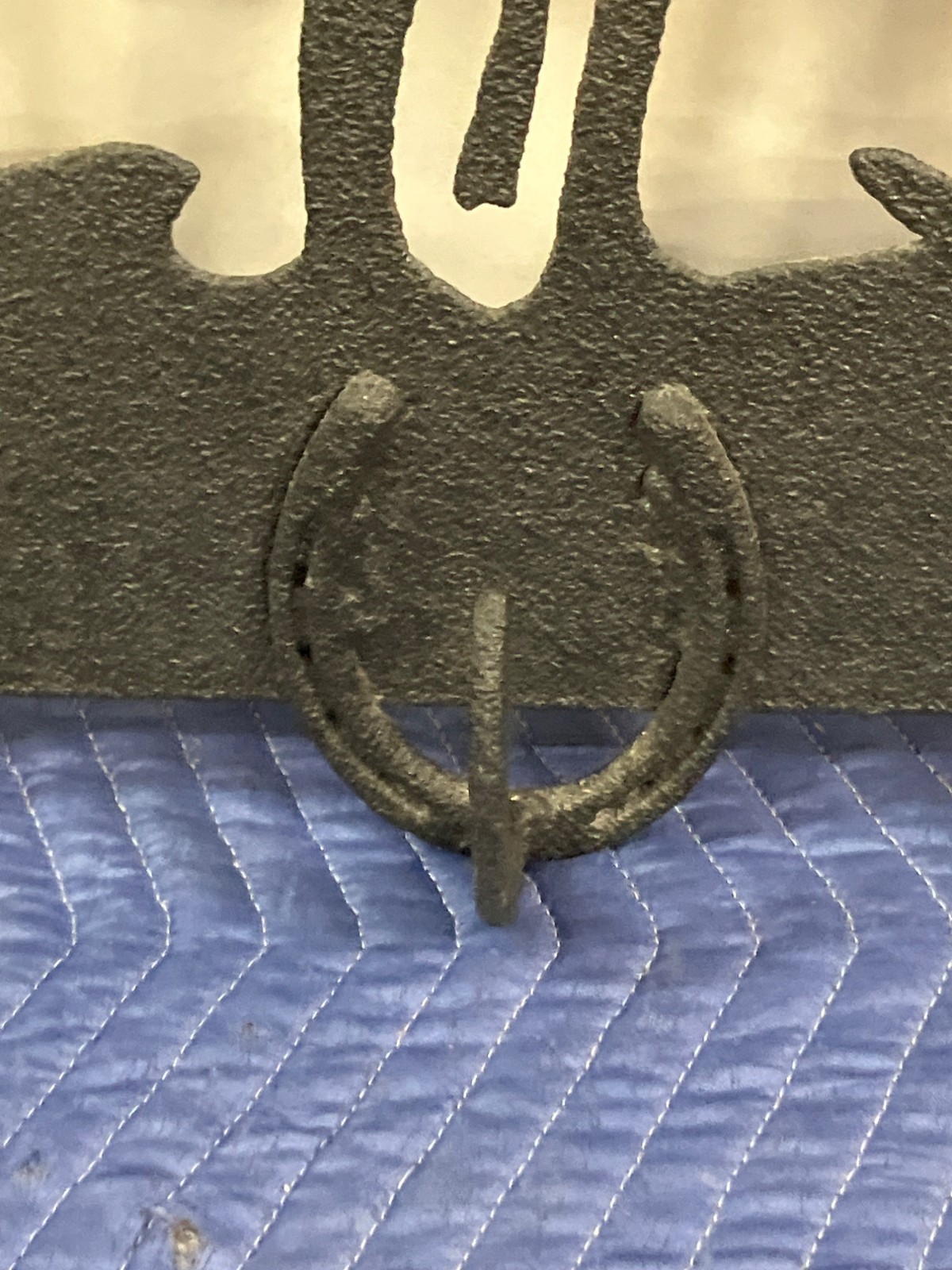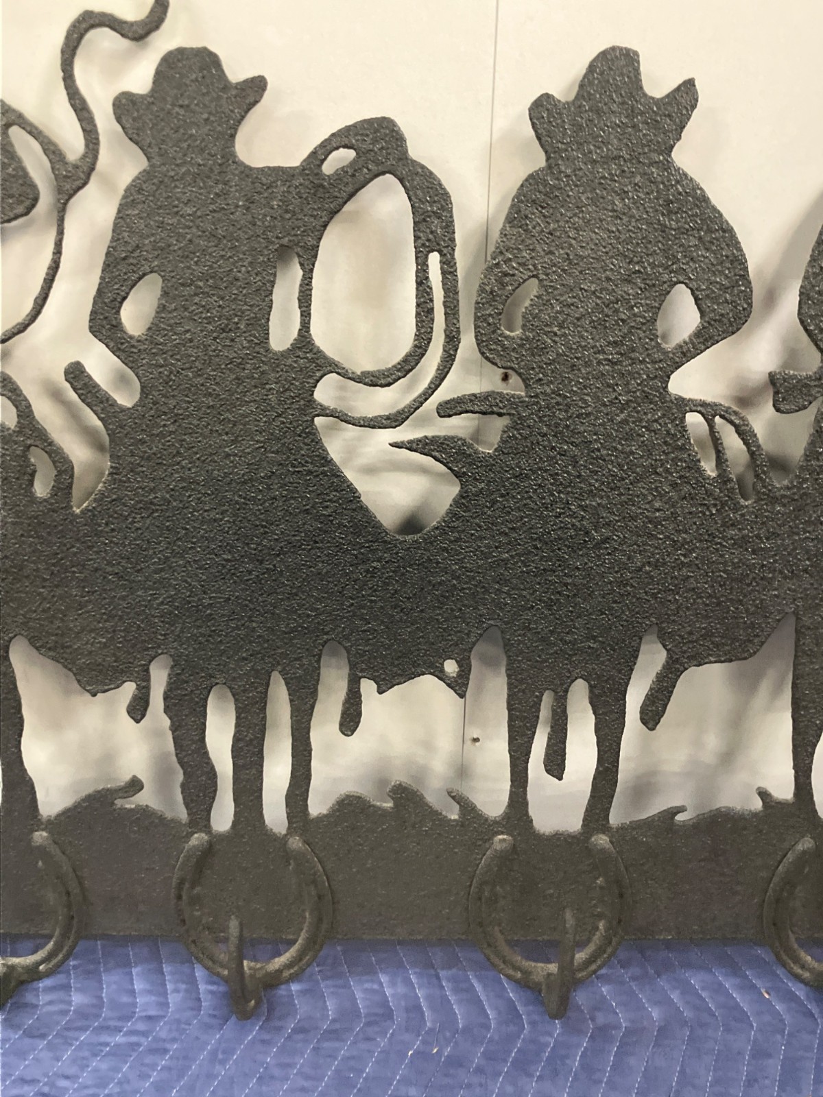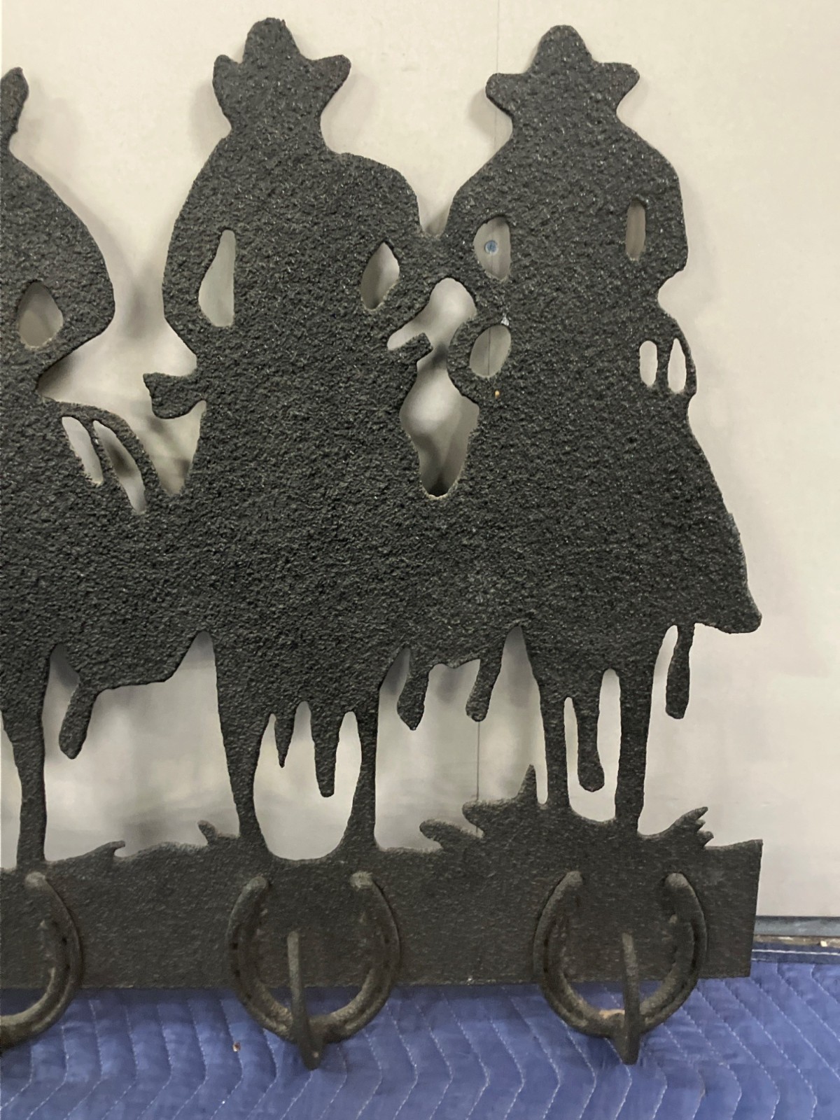 LARGE Wall Rack Metal Cowboy Art Silhouette Horseshoes Hooks 57" x 29"