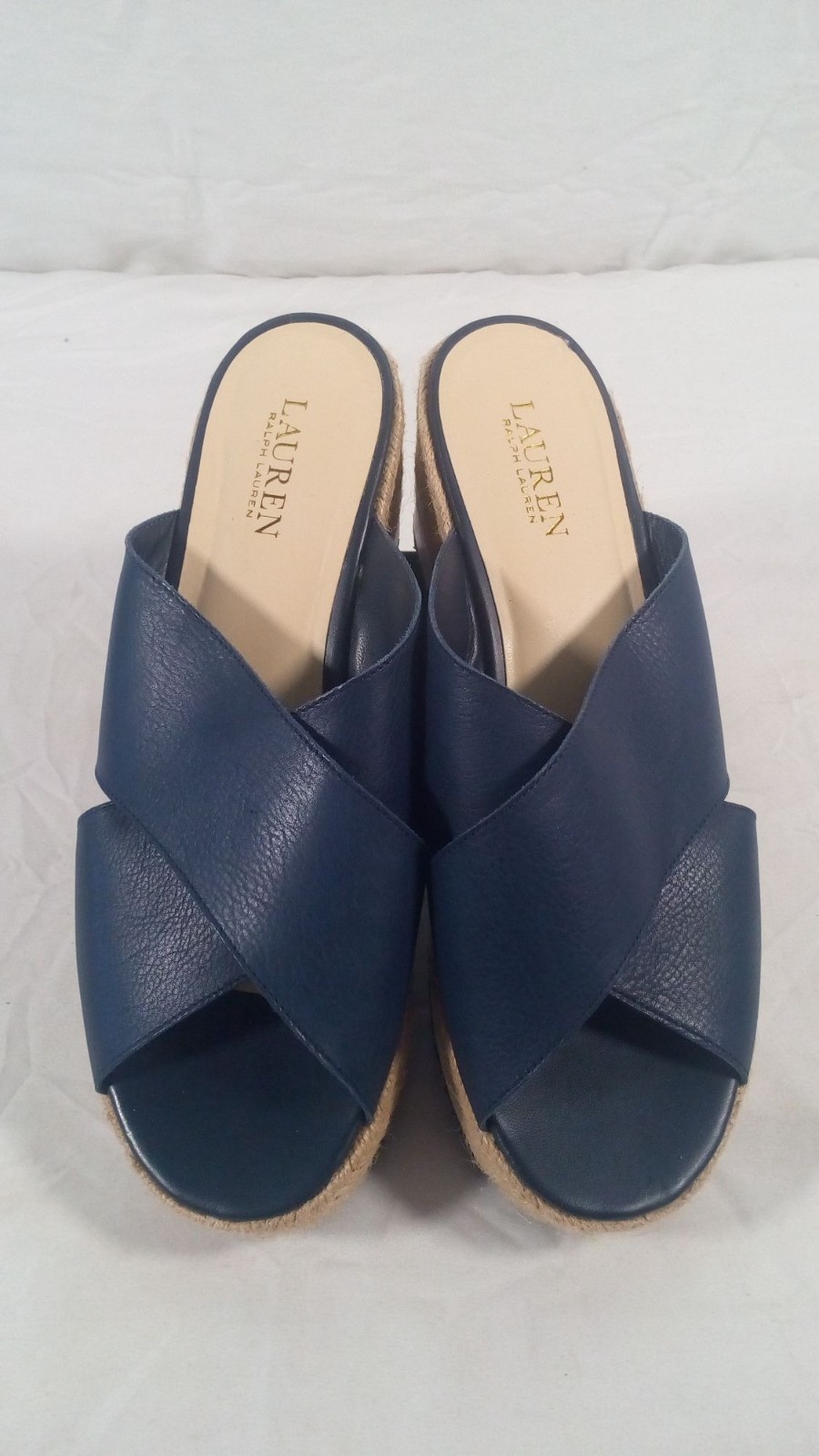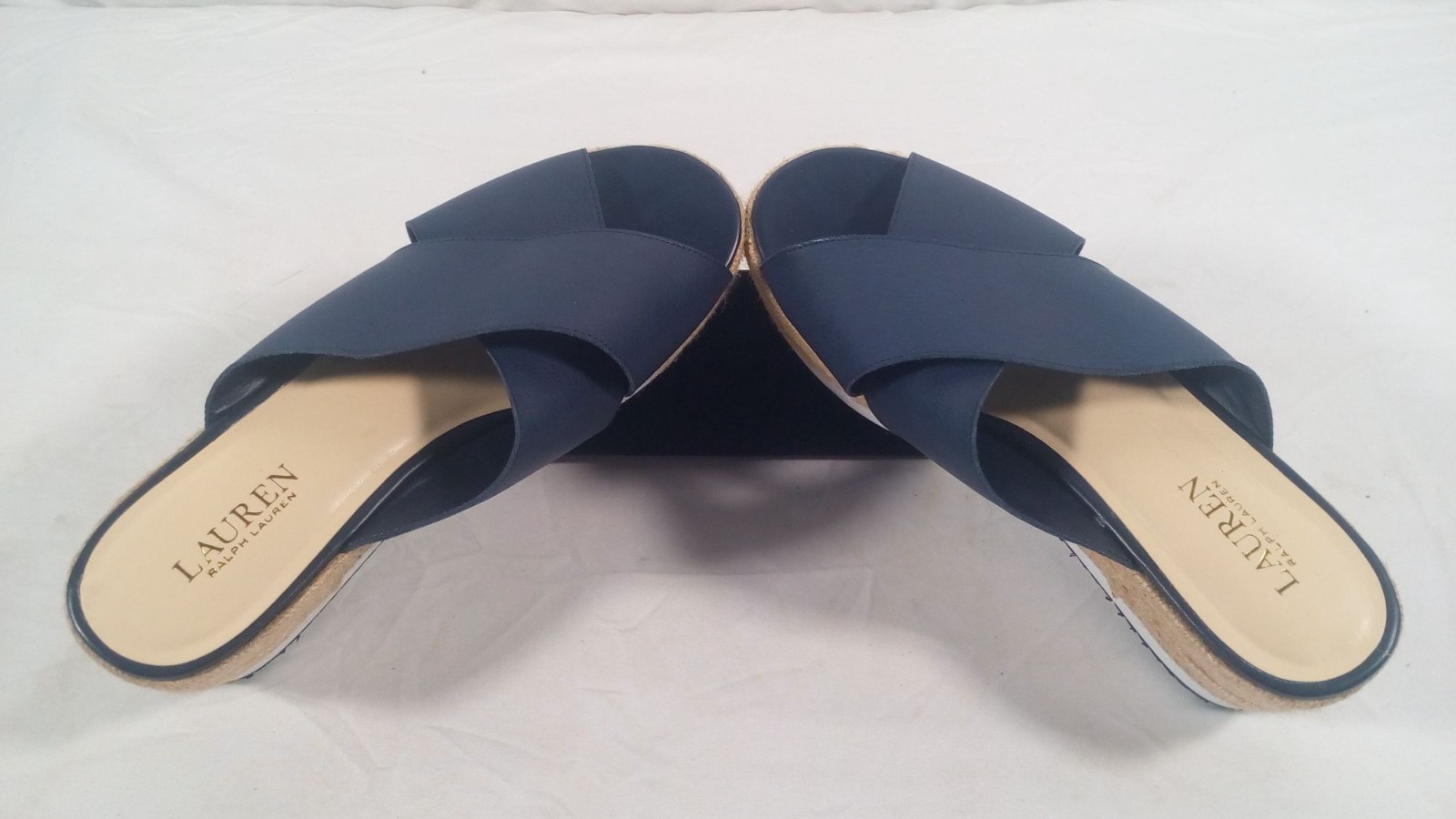 Lauren Ralph Lauren Womens Navy Leather Espadrille Slide Sandals Size 11B
