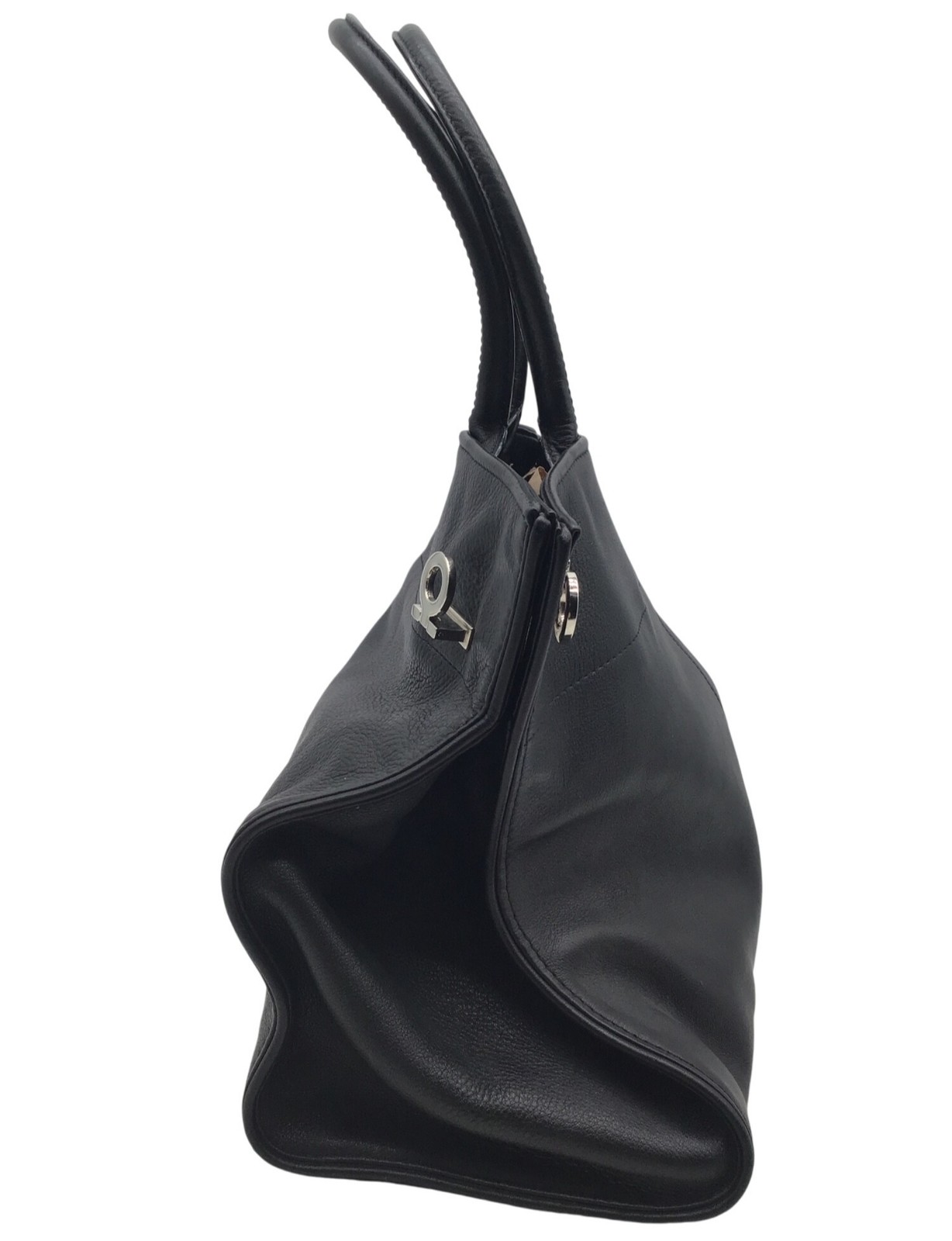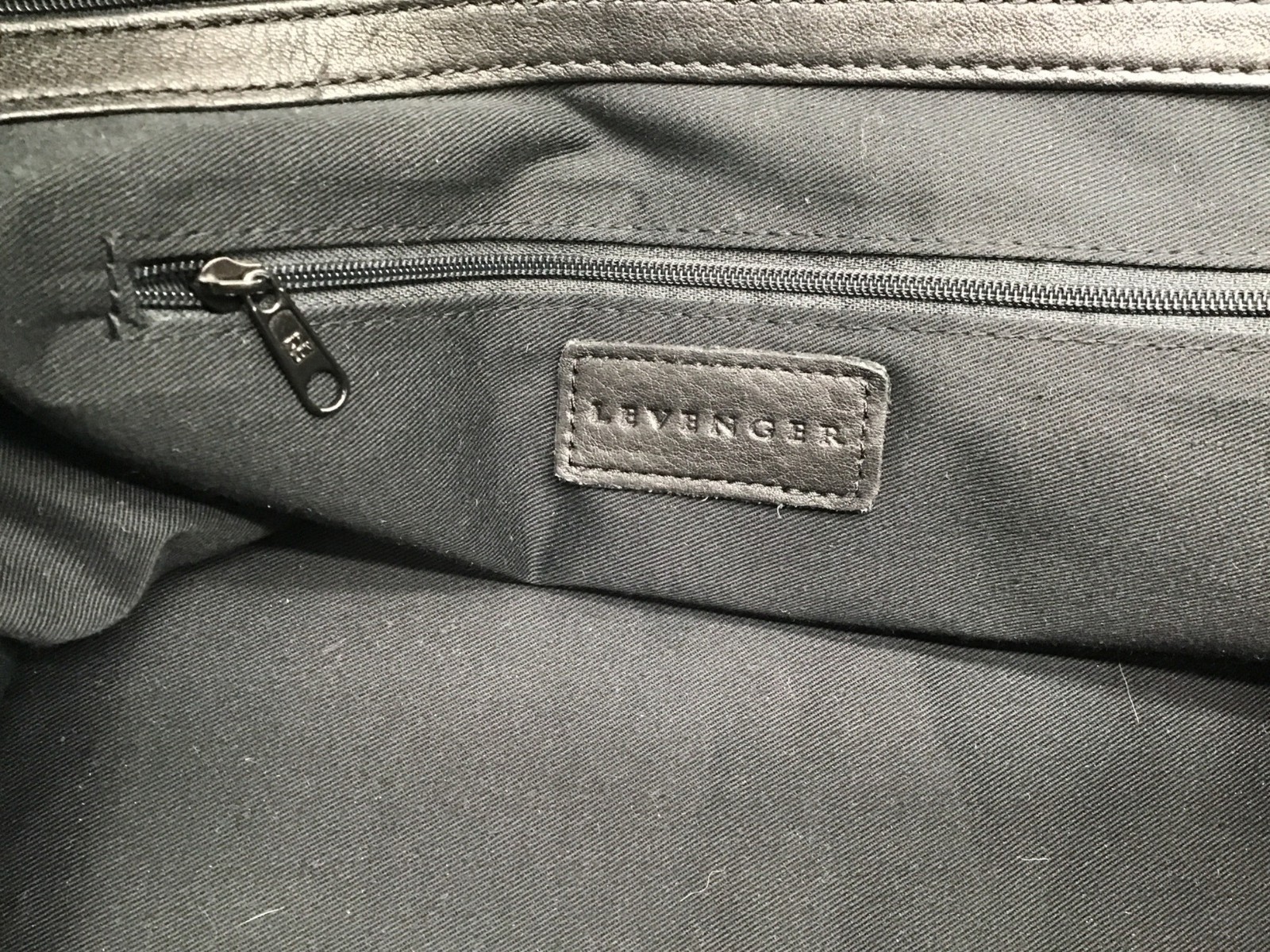 Levenger Black Leather Tote Bag With Dual Handles & Silver Hardware