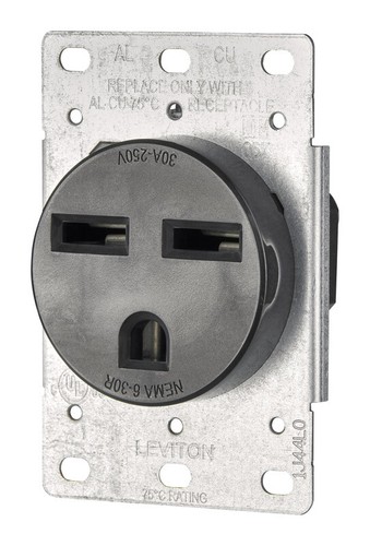 Leviton 05372-S00 30A 2-Pole 3-Wire 4 to 8 ga. Black Outlet 3.75 H x 2.42 W in.