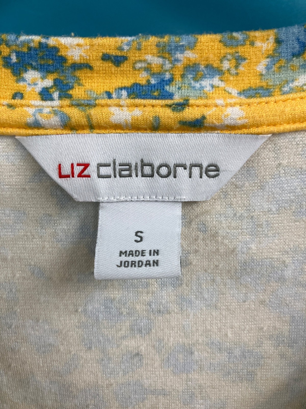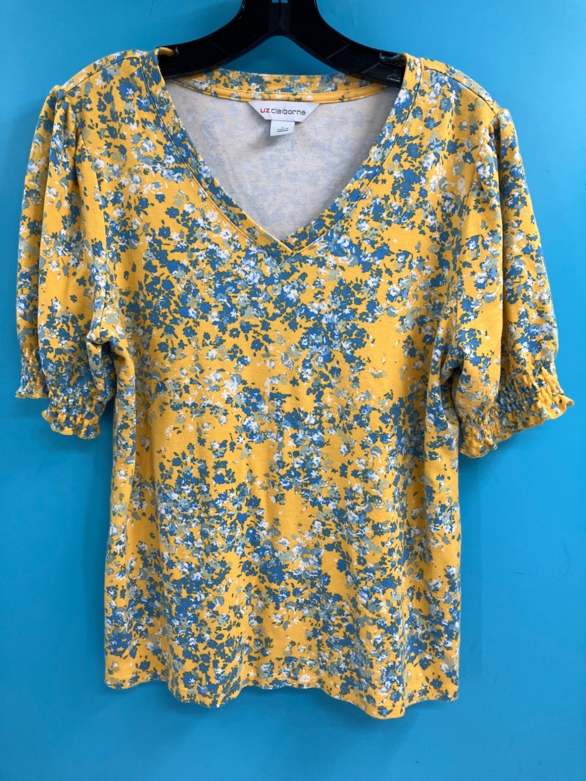 Liz Claiborne Womens Yellow & Blue V-Neck Top - Size-S