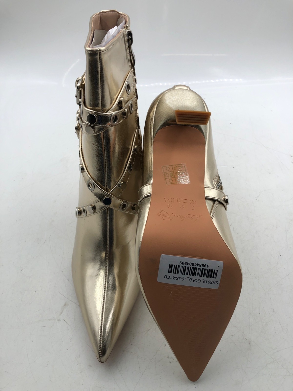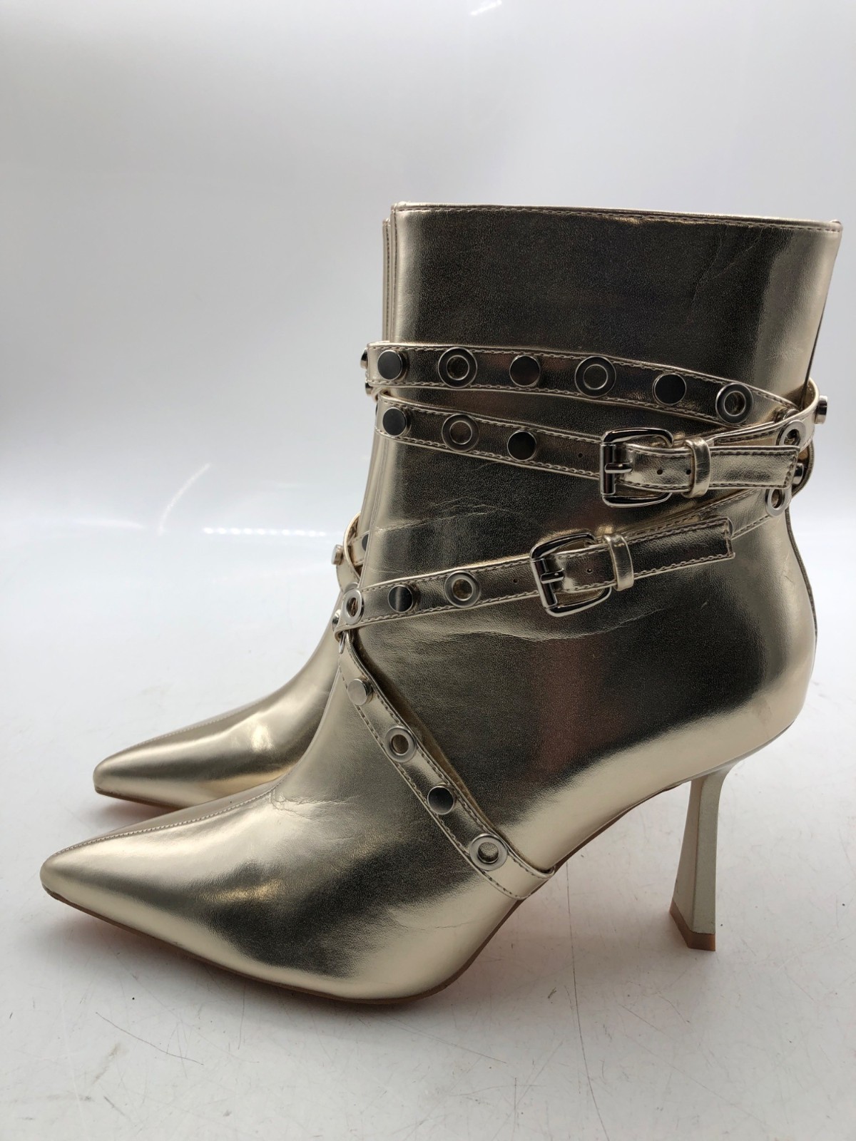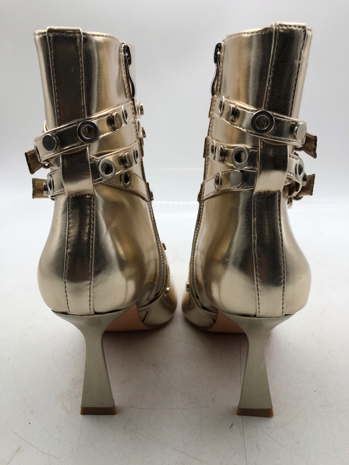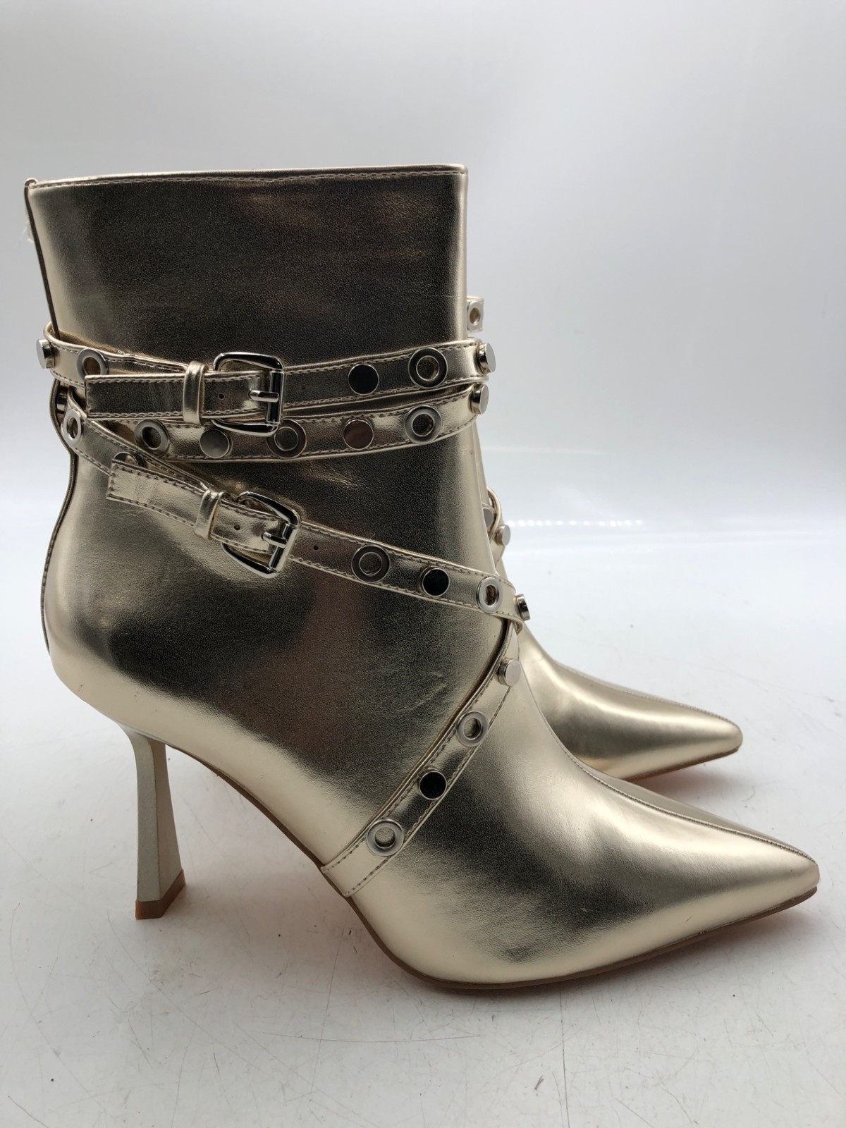 London Rag Leather Eyelets & Studs Harness Ankle Boots (Gold)- US 10 EU 41