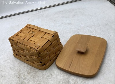 Longaberger Brown Woven Wooden Rectangle Shape Home Decor Basket With Lid